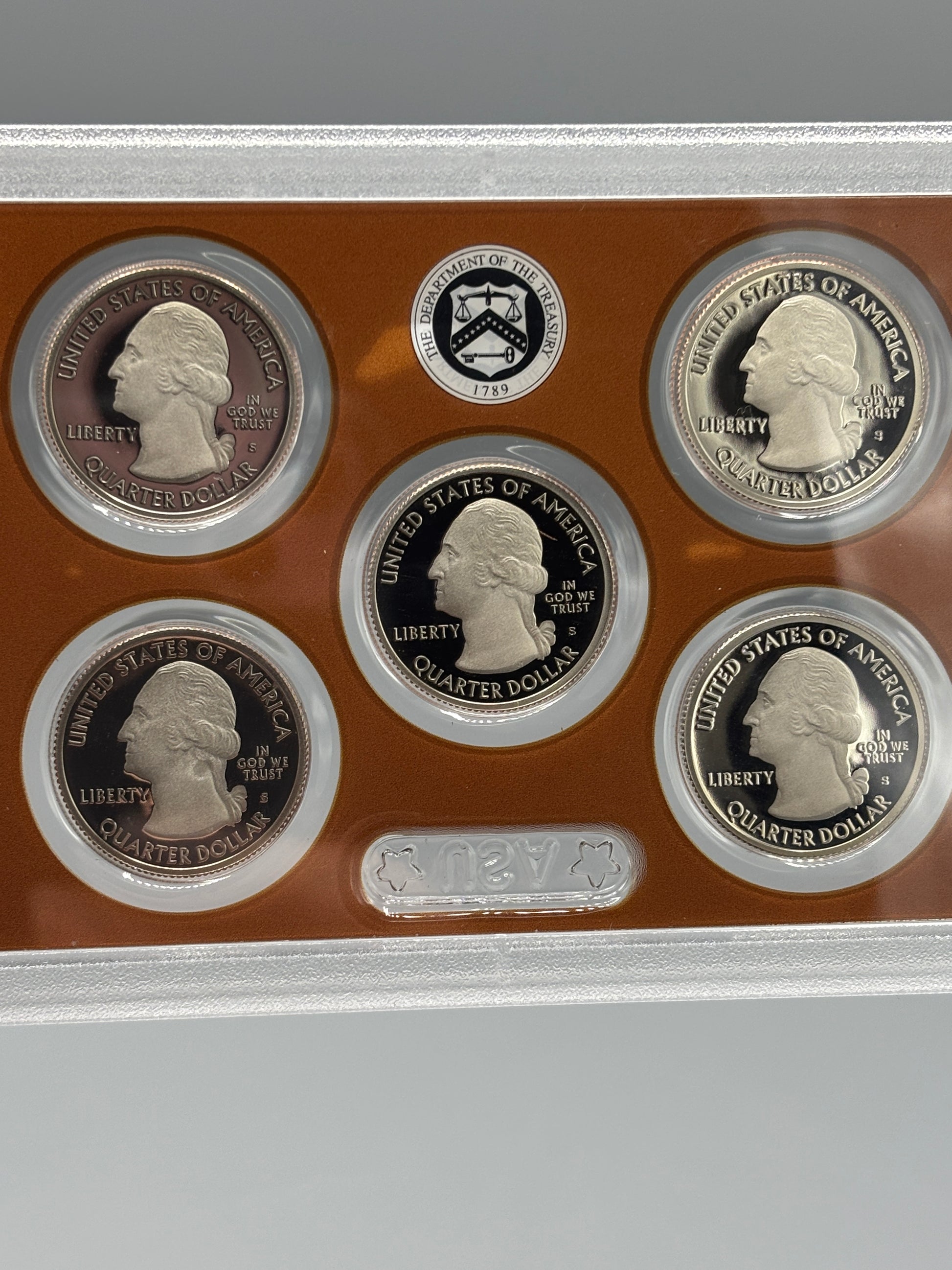 2018 US Mint America the beautiful silver Quarter proof set that any collector would love. This is in its original case and shows no damages to the case. The quarters have never been taken out.