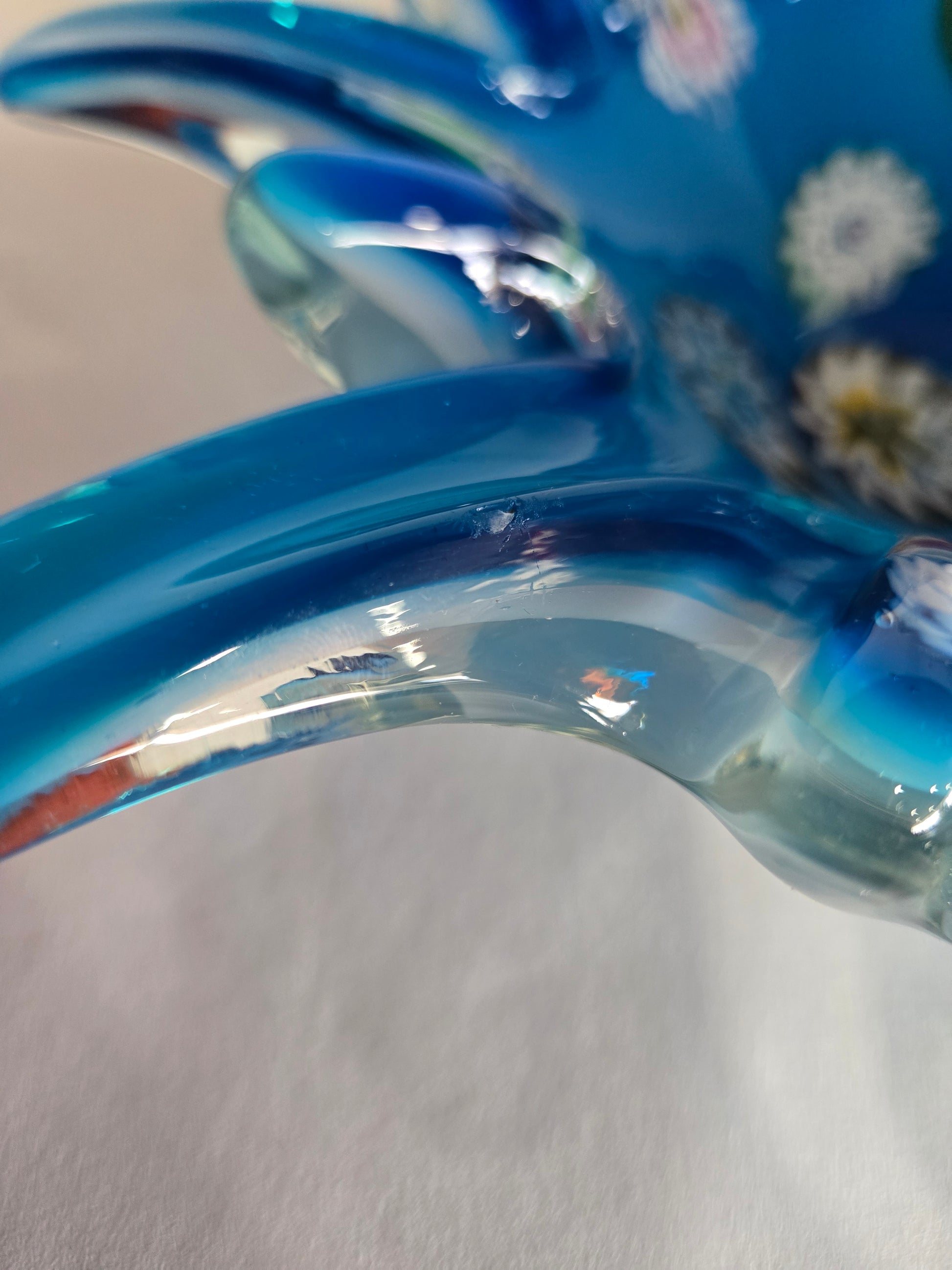 Blue Murano Glass Bowl w/ Millefiori Floral Inclusion