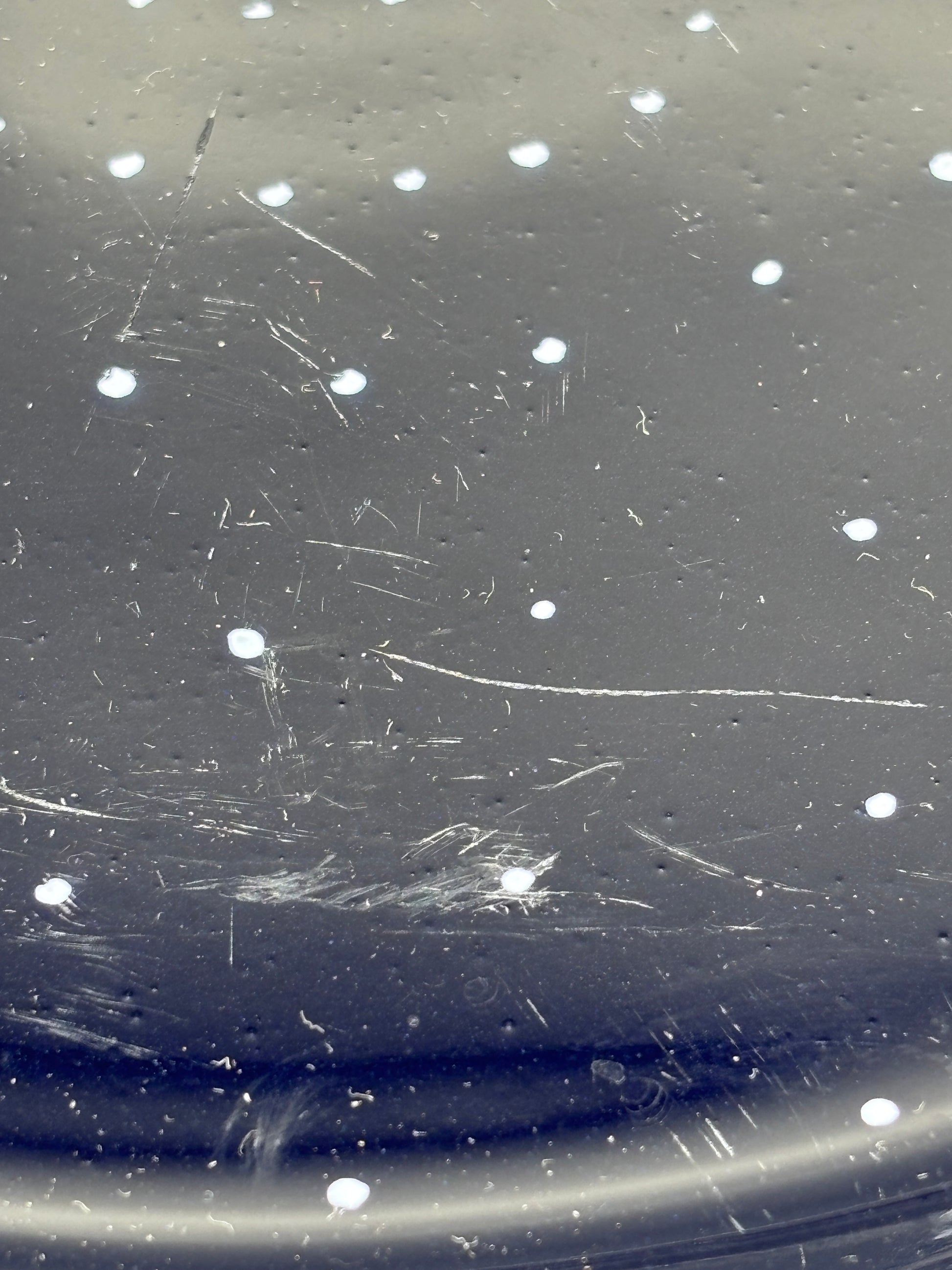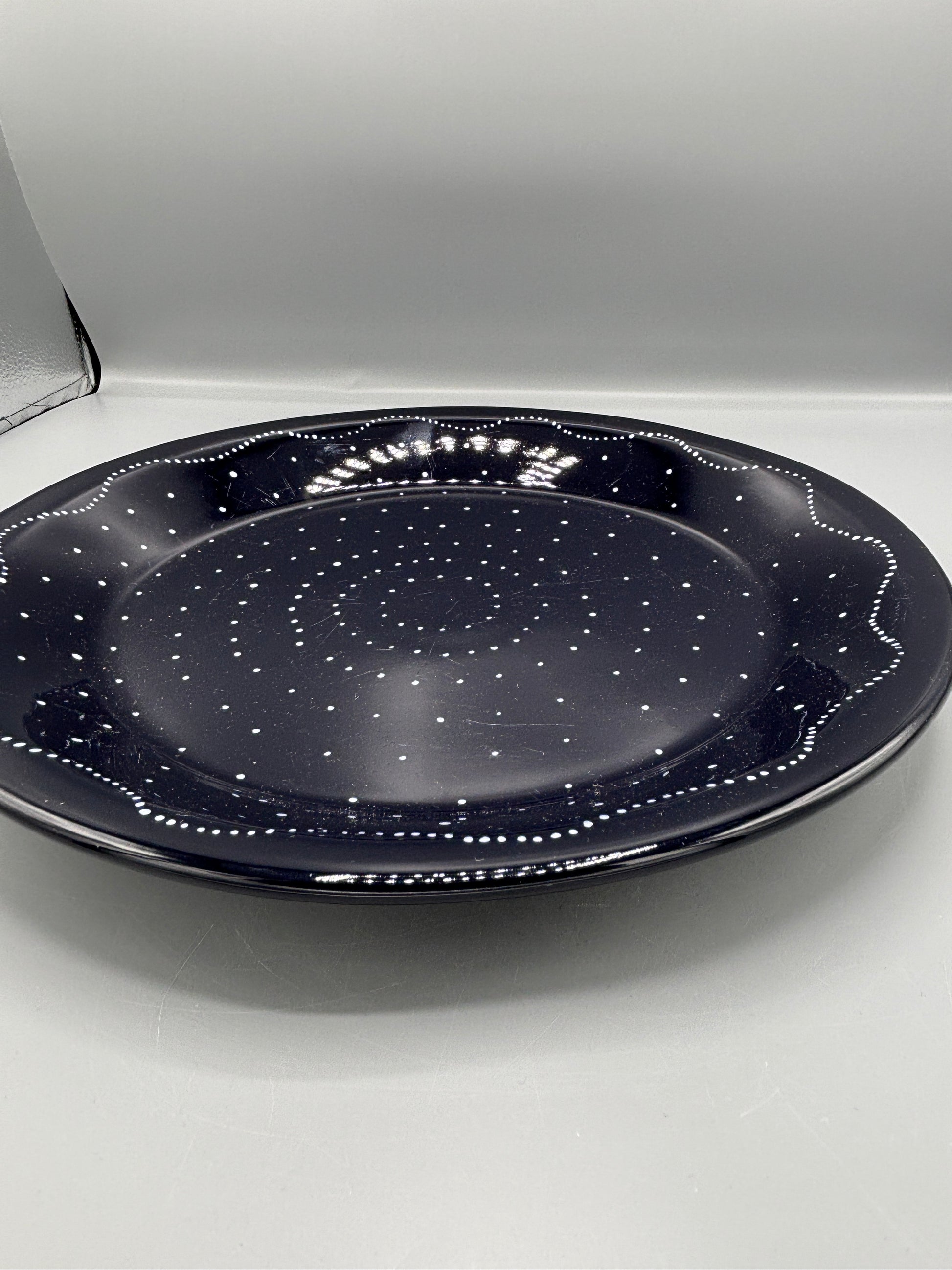 Ceramic polka Dot Platter that is large and heavy. This has a cute dot pattern over the deep blue. This has scratches, refer to pictures for details.