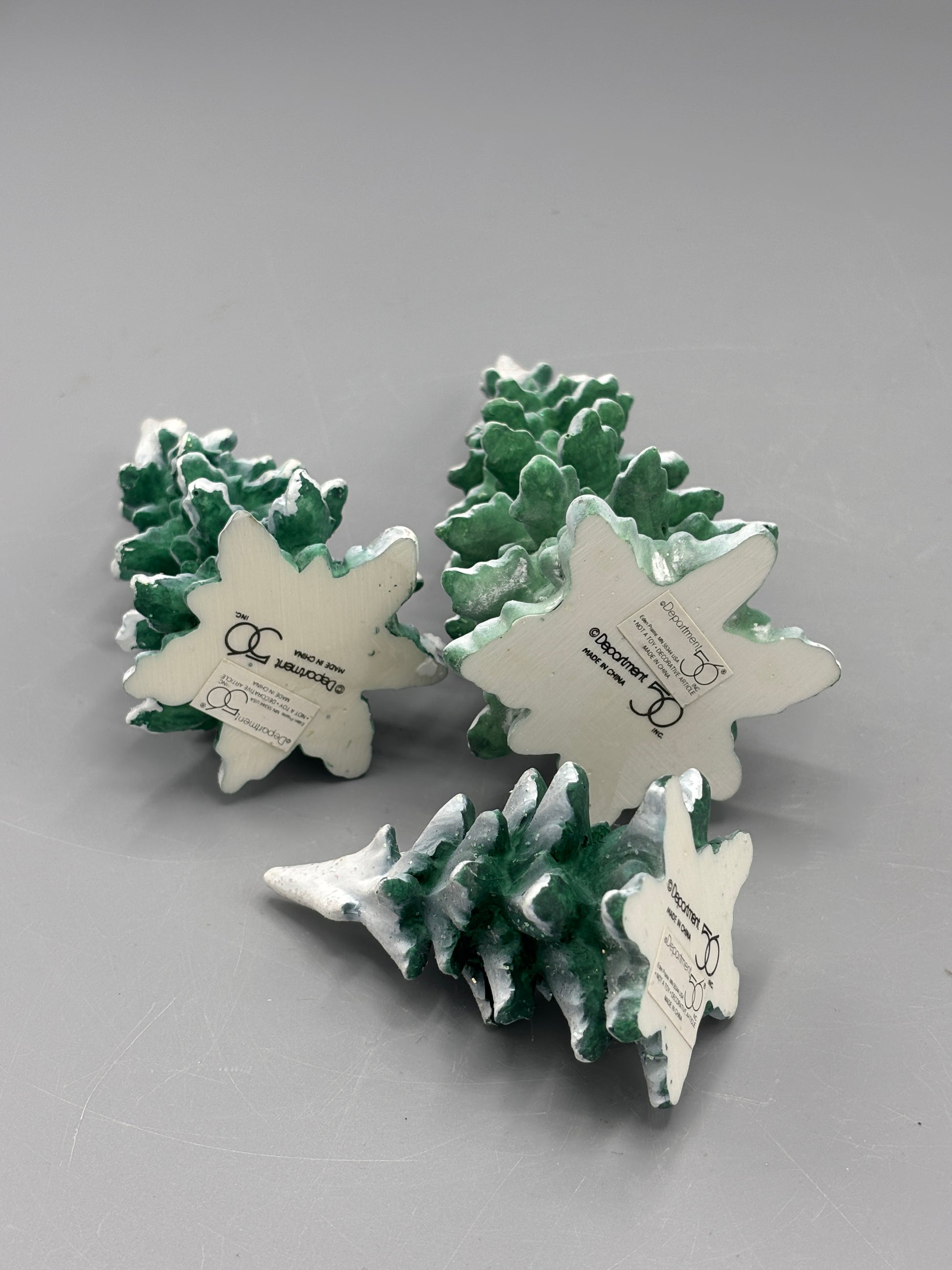 Dept 56 Wintergreen pines that would look stunning in any village or Christmas display. The details on the trees with the snow and glistening in any light is gorgeous.