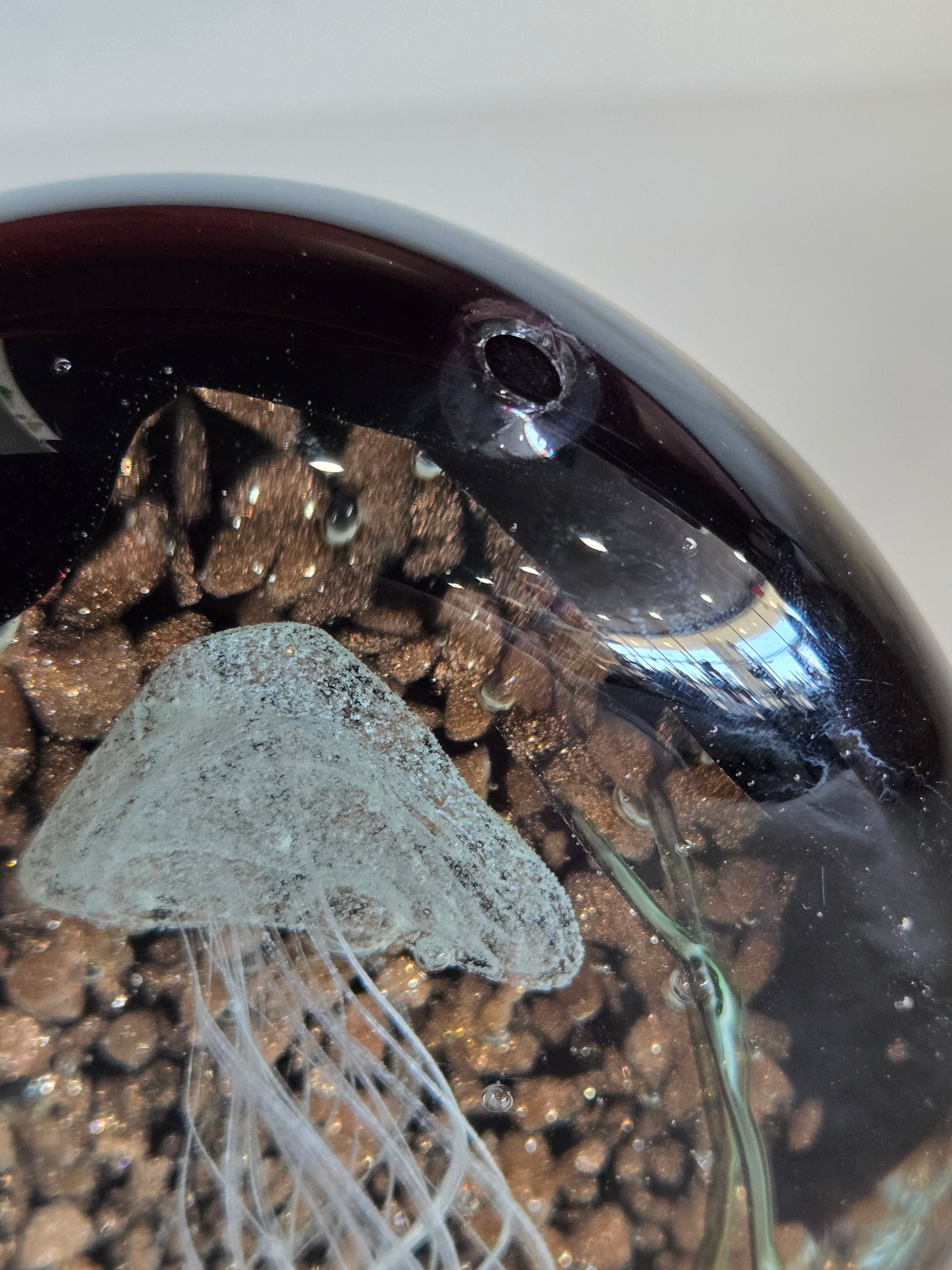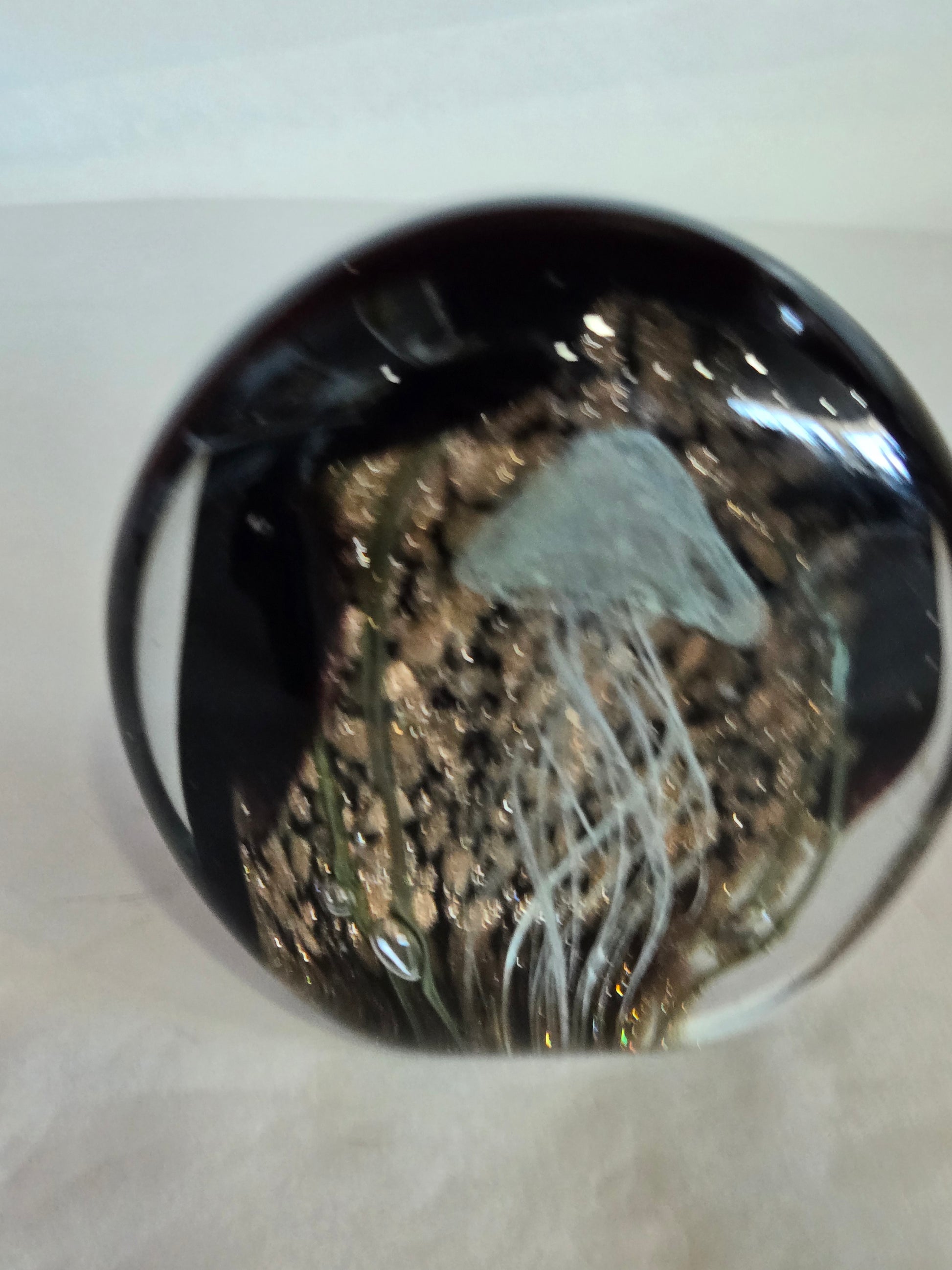 Glass Paperweight w/ Encased Jellyfish Design