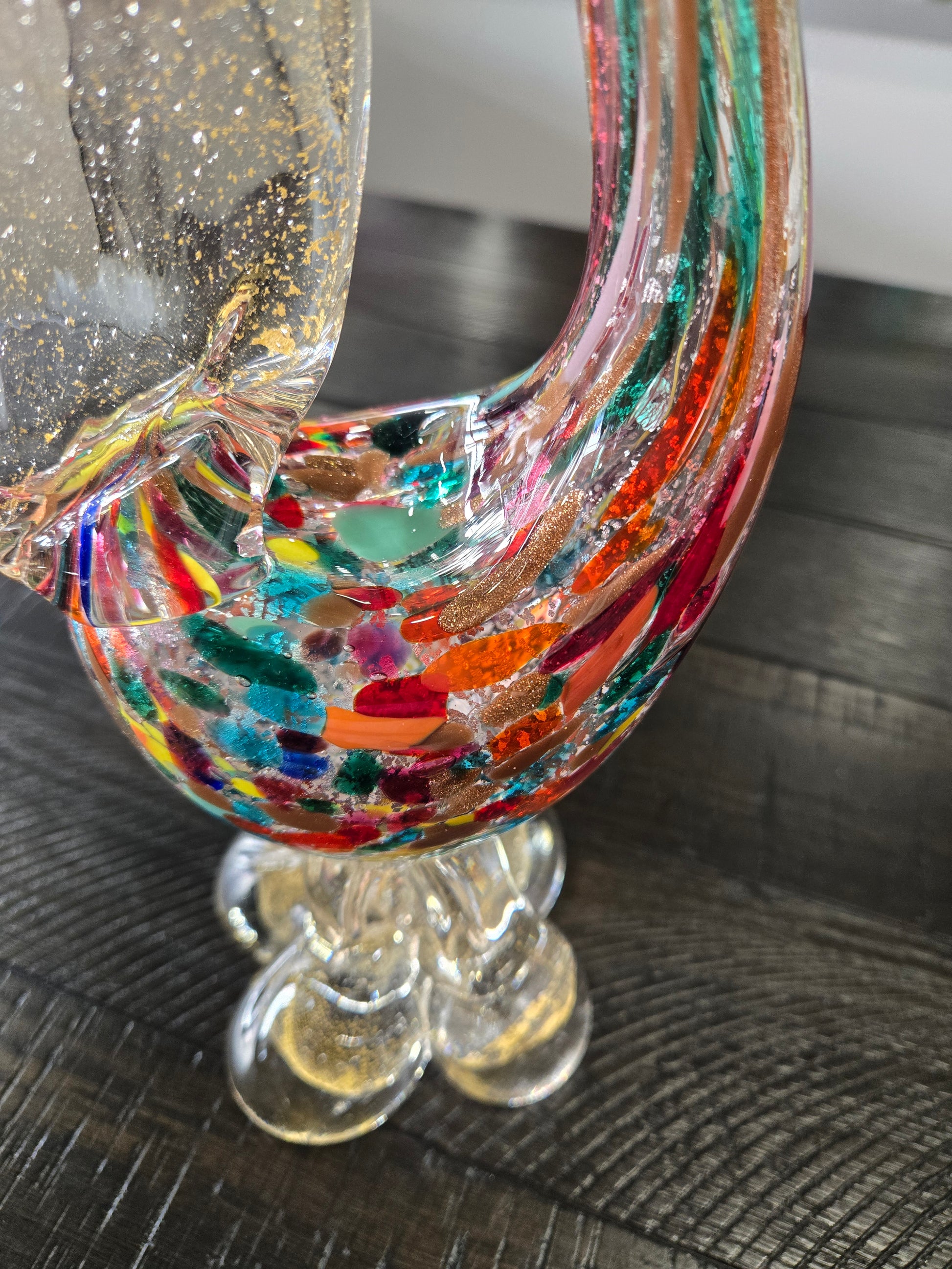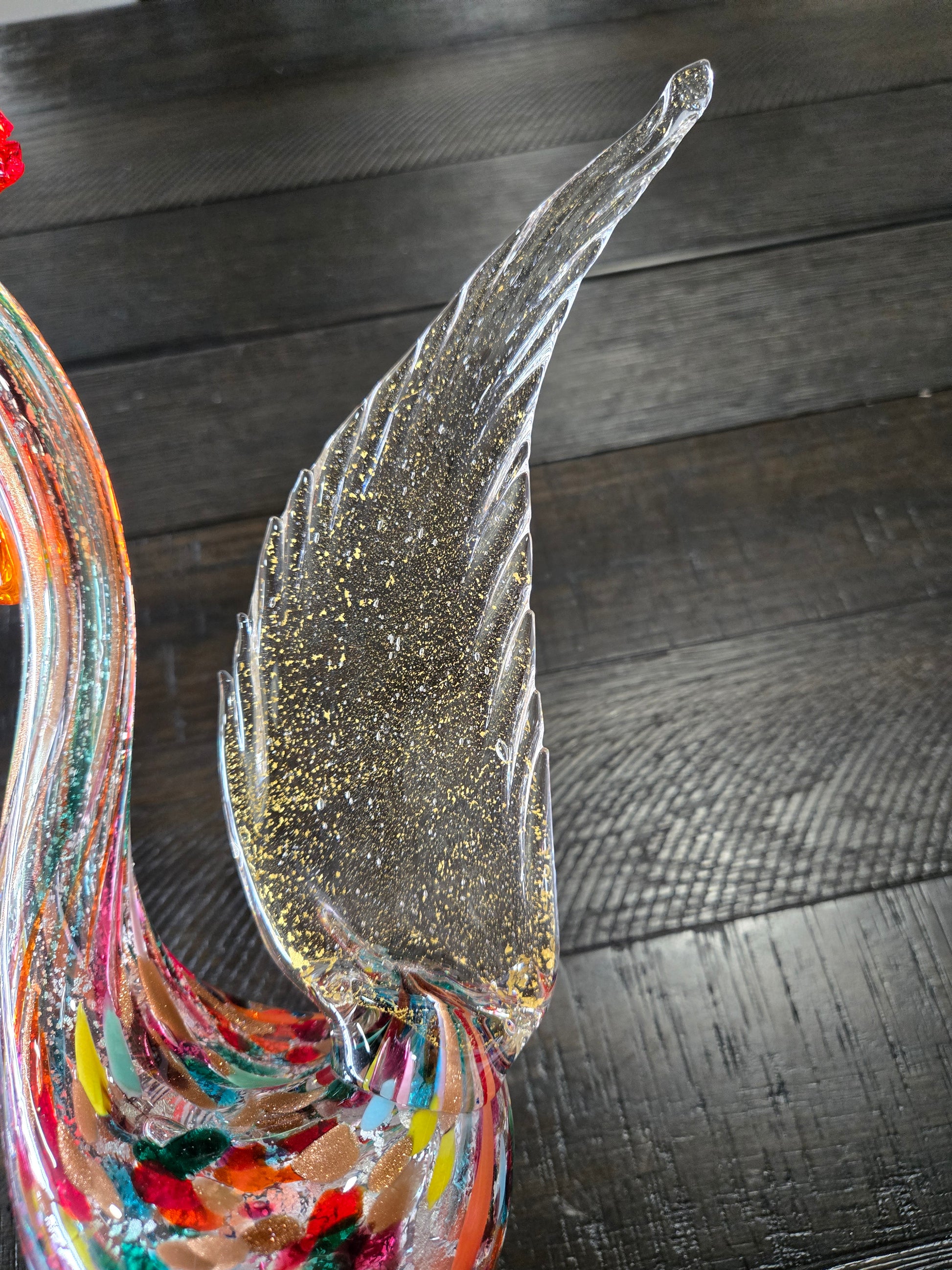 Mid Century Murano Glass Rooster- Multicolor with gold flecks