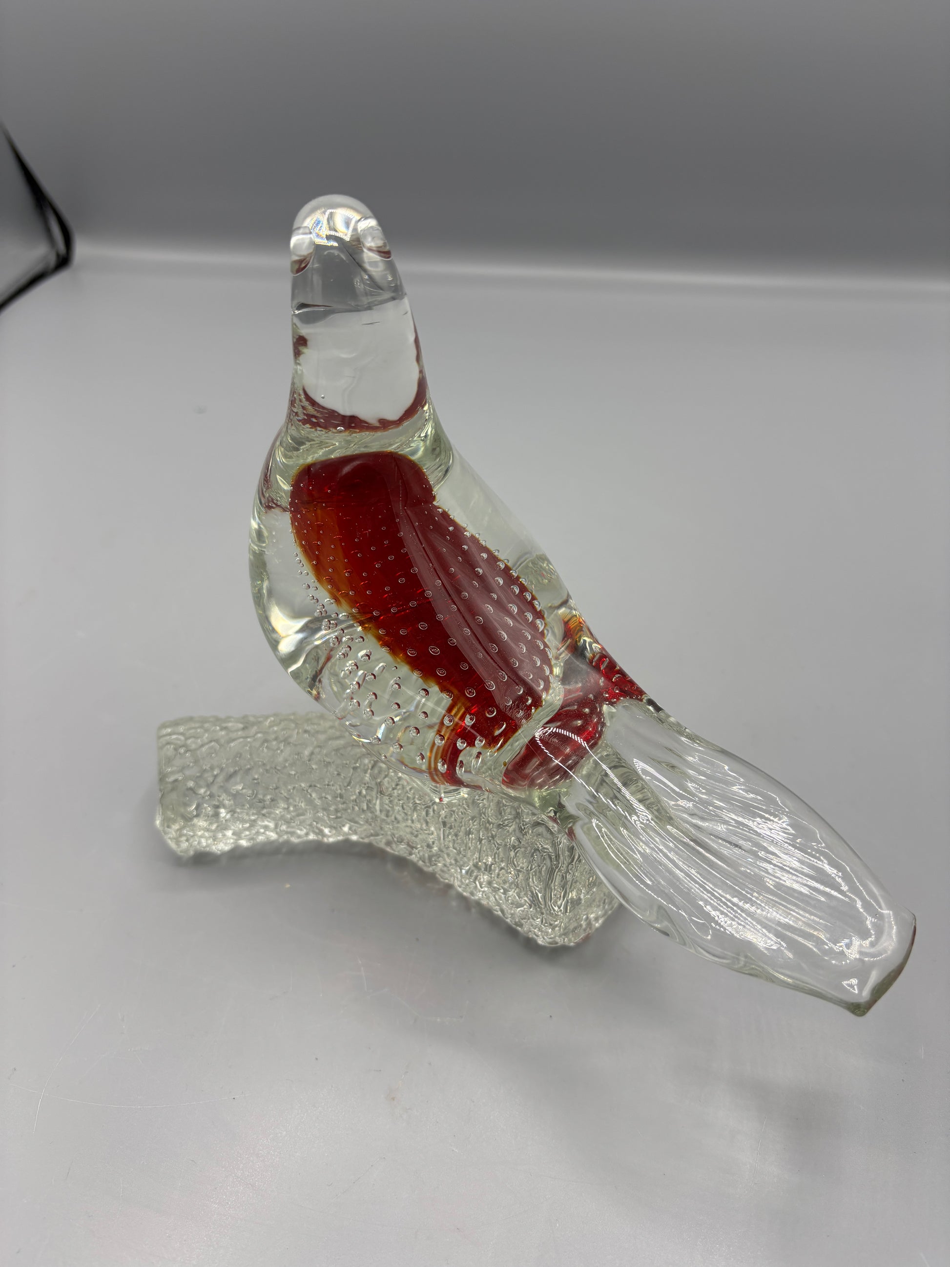 Murano controlled bubble glass bird on branch. This is a great statement piece that would look good in any room. The bubbles are mesmerizing and the details is truly unique. This shows no signs of damages, cracks, or chips.