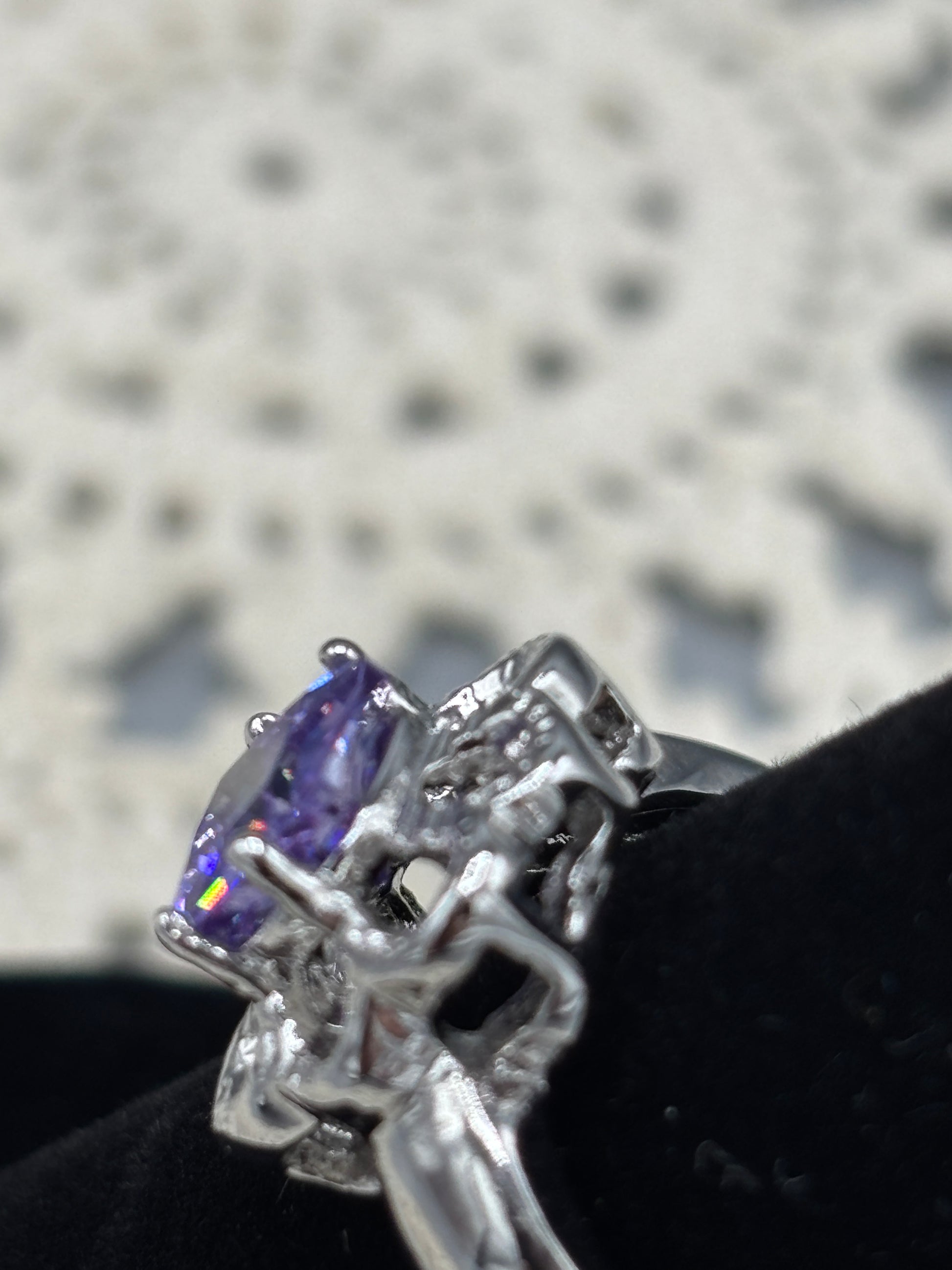 Silver tone Lilac stone ring that is stunning. This ring is a vibrant reflective shade of purples in the light. This is a ring everyone will notice!
