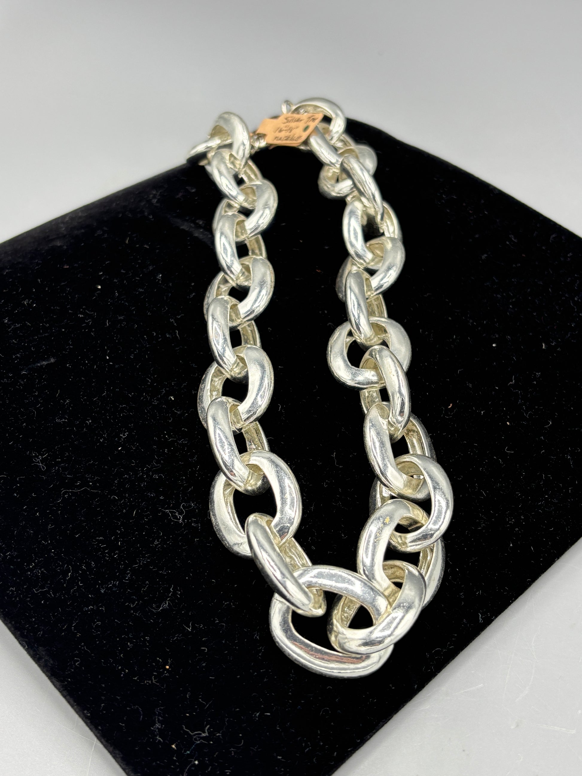 Silver tone necklace that is sure to make a statement at any event or use for daily wear. This is a silver tone not Sterling silver.