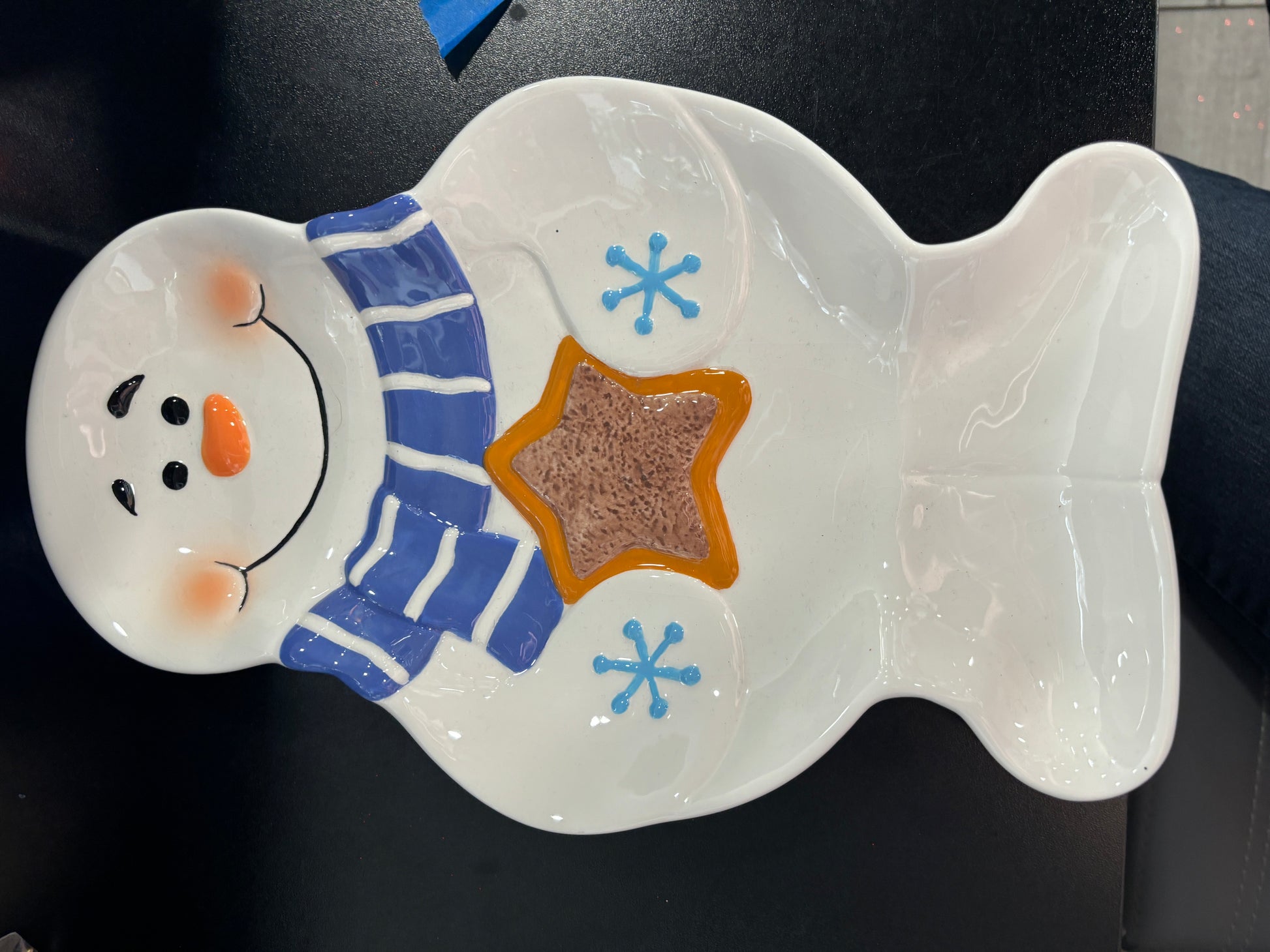 Snowman with cookie platter that is so cute for the holidays. This shows signs of crazing, refer to the pictures. This is a large plate.