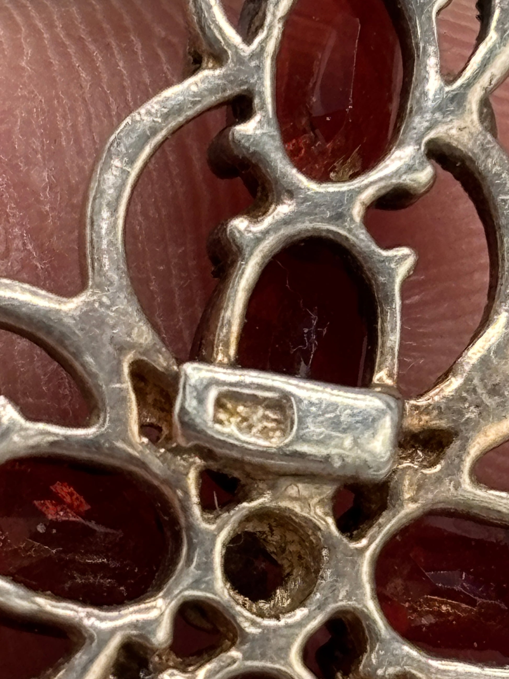 Sterling Garnet Cross pendant that is absolutely stunning. This is sterling silver and the garnets shine vibrantly in the light. This shows no signs of damage.