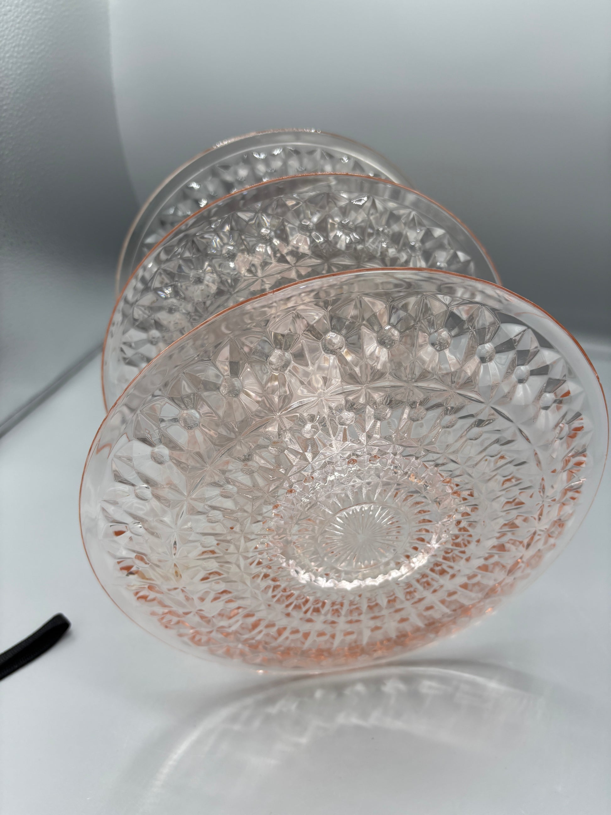 Three Tiered Pink Depression Glass Dessert Stand