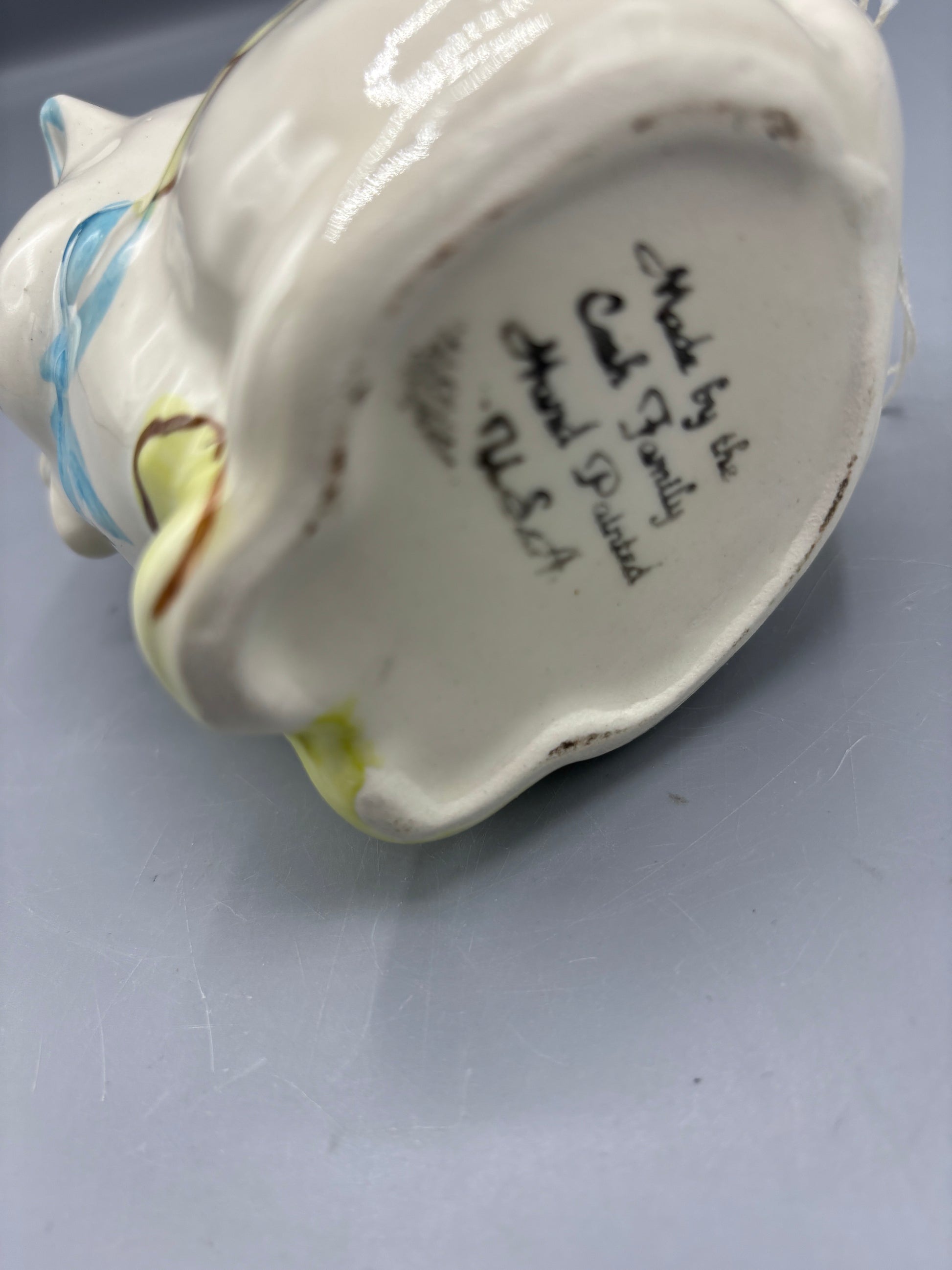Vintage Cat Creamer that has an expression that is sure to make any gathering fun. She has eye lashes and a cute smile. The colors on her are still vibrant for the age. This shows no damages, refer to pictures for details.