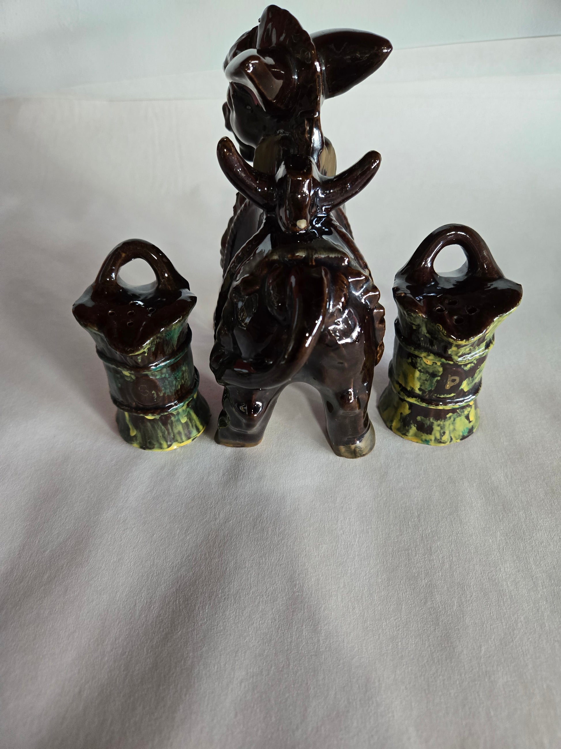 Vintage Ceramic Donkey Salt and Pepper 3pc Set