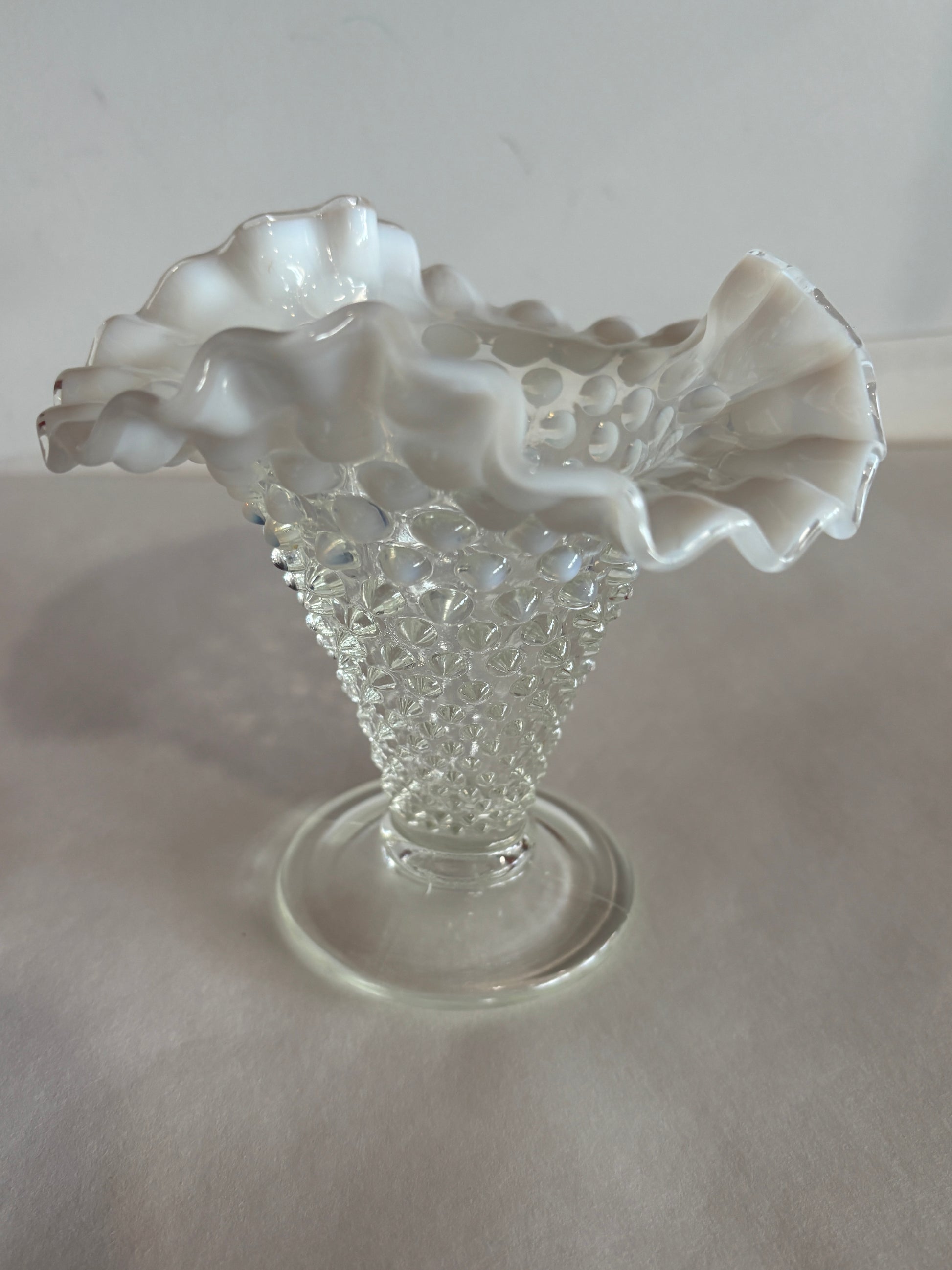 Vintage Fenton Hobnail Crimped Ruffled Opalescent Vase