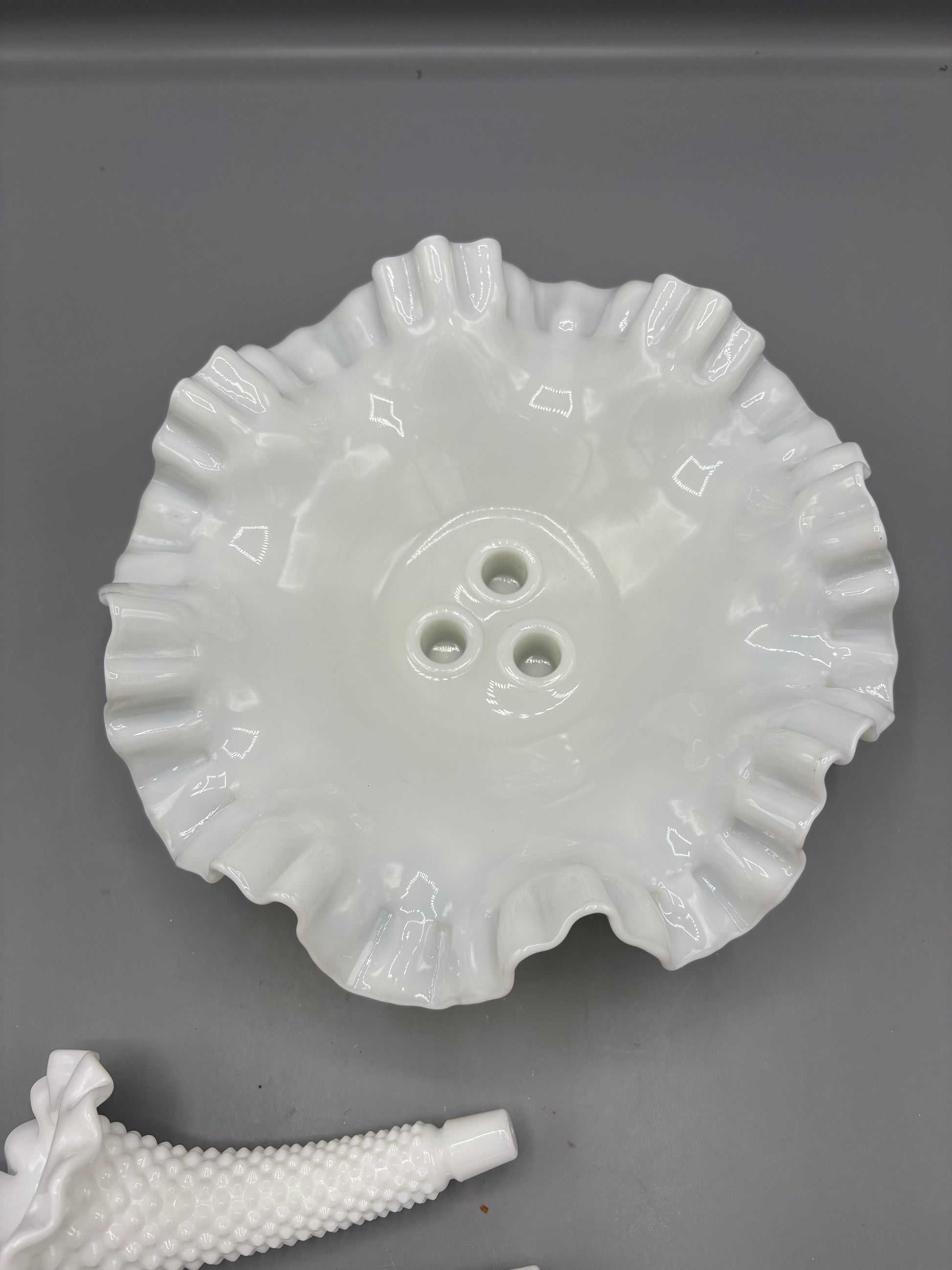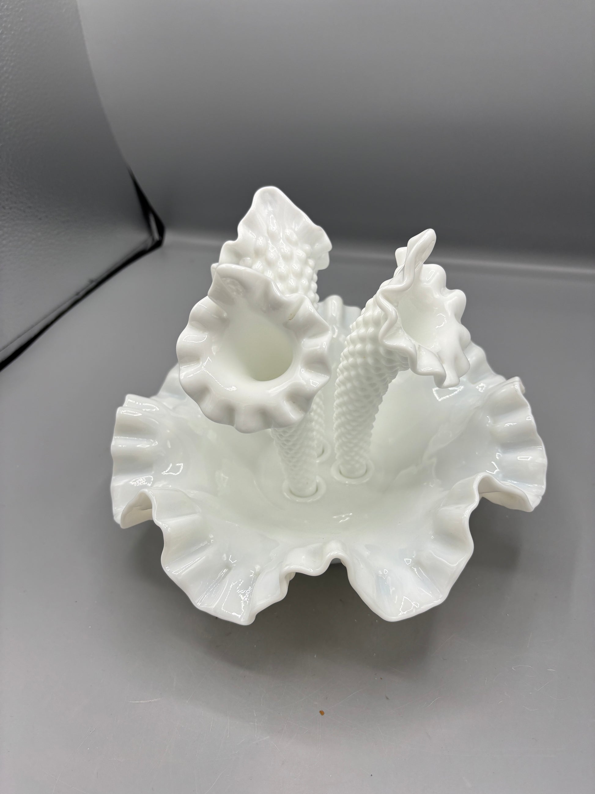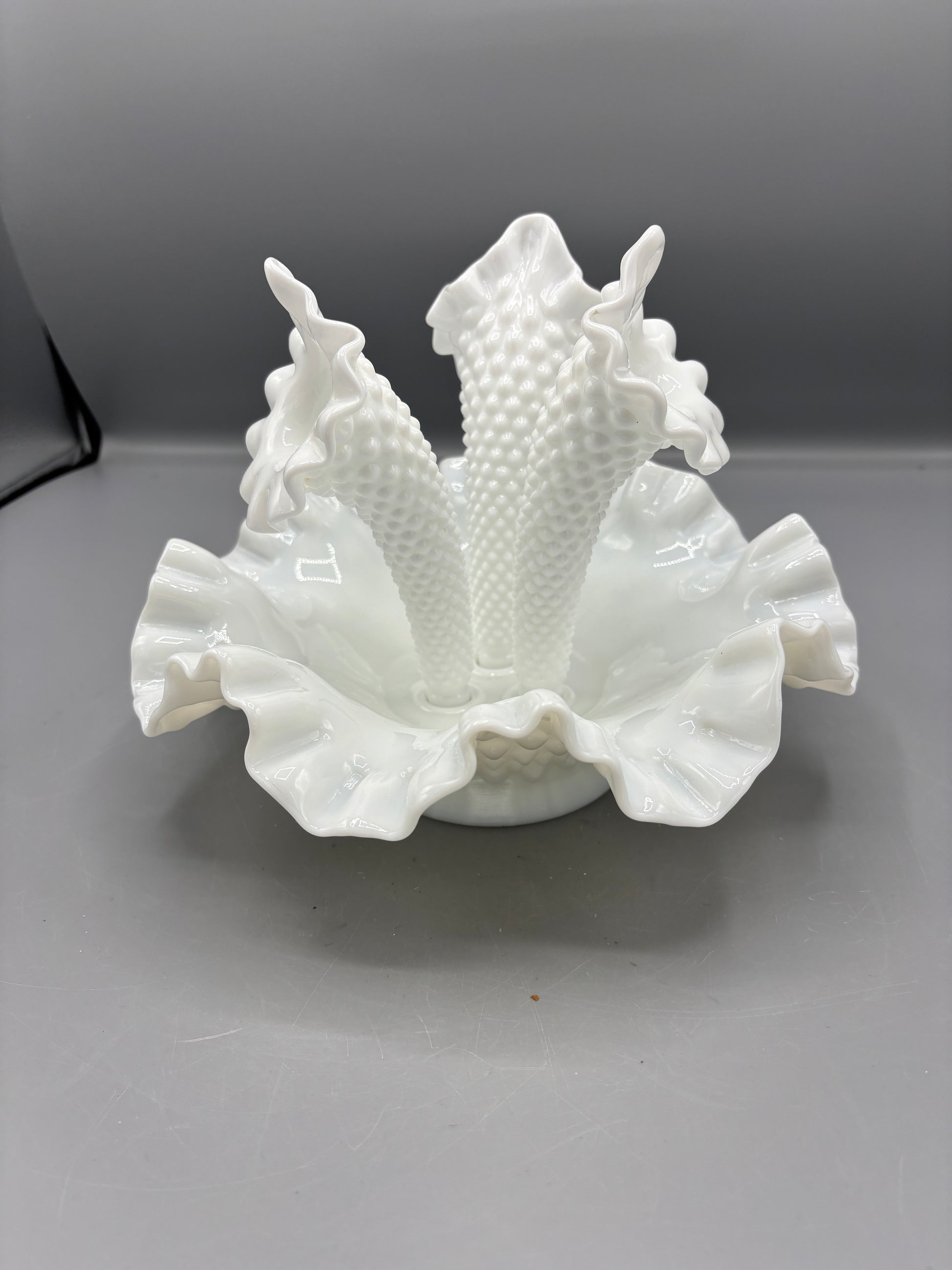 Vintage Fenton milk glass hobnail Epergne with 3 removable horns
