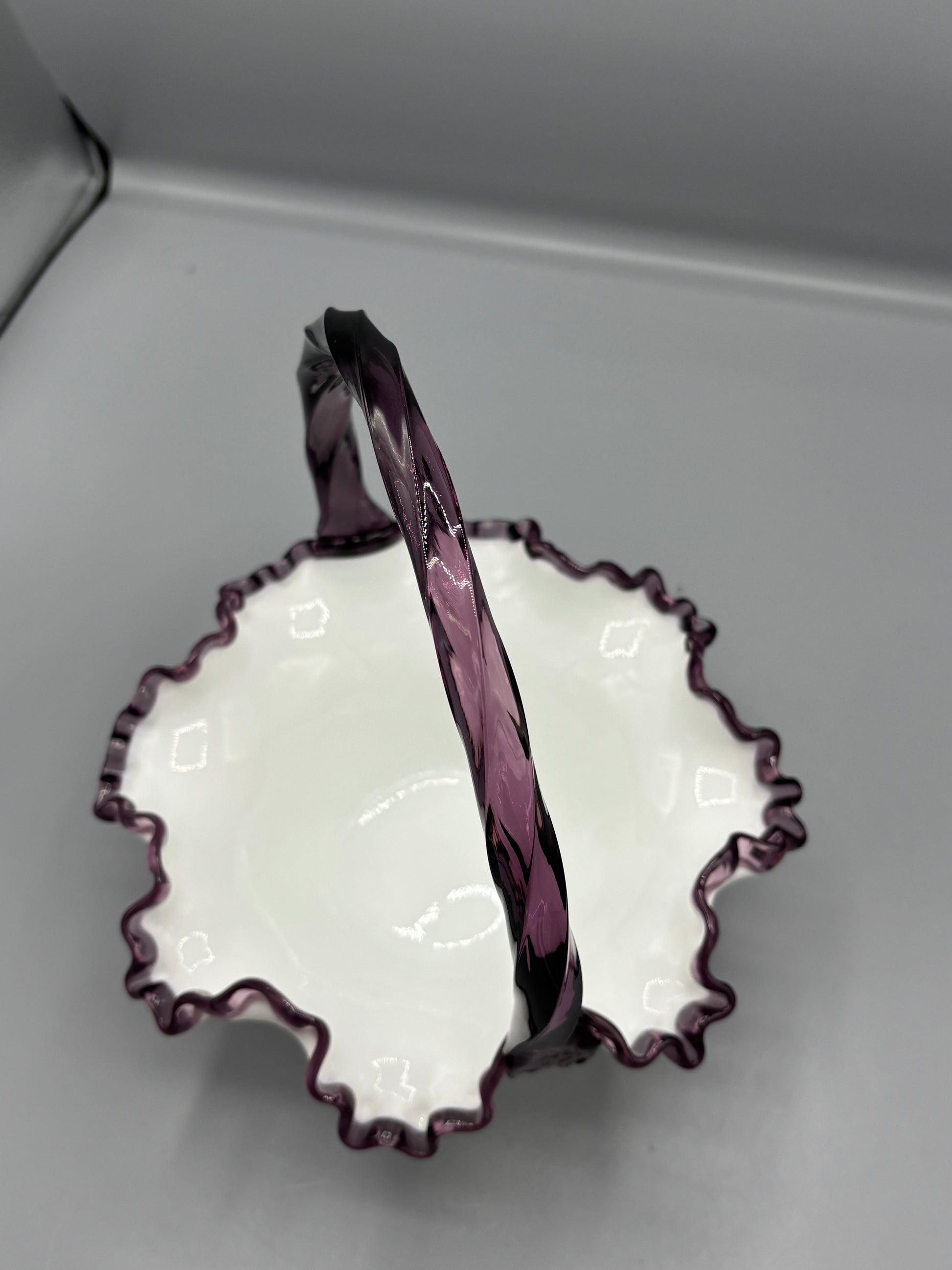 Vintage Fenton Plum crest basket
