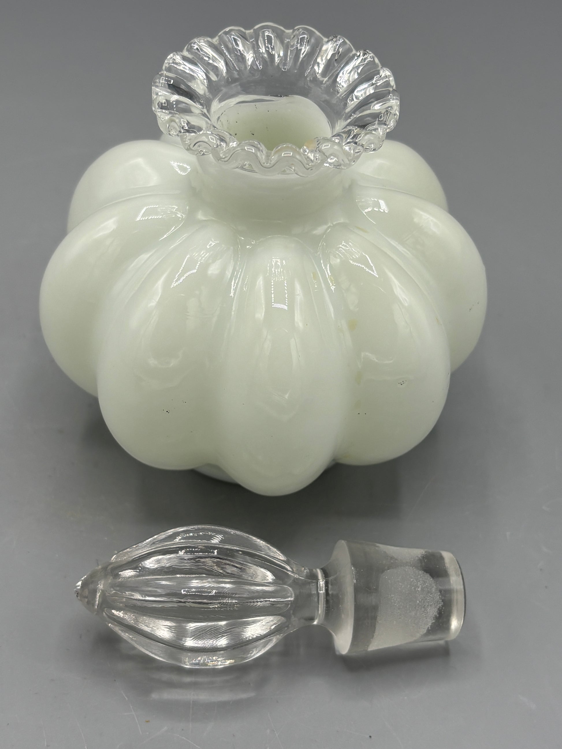 Vintage Fenton silver crest milk glass perfume bottle with stopper