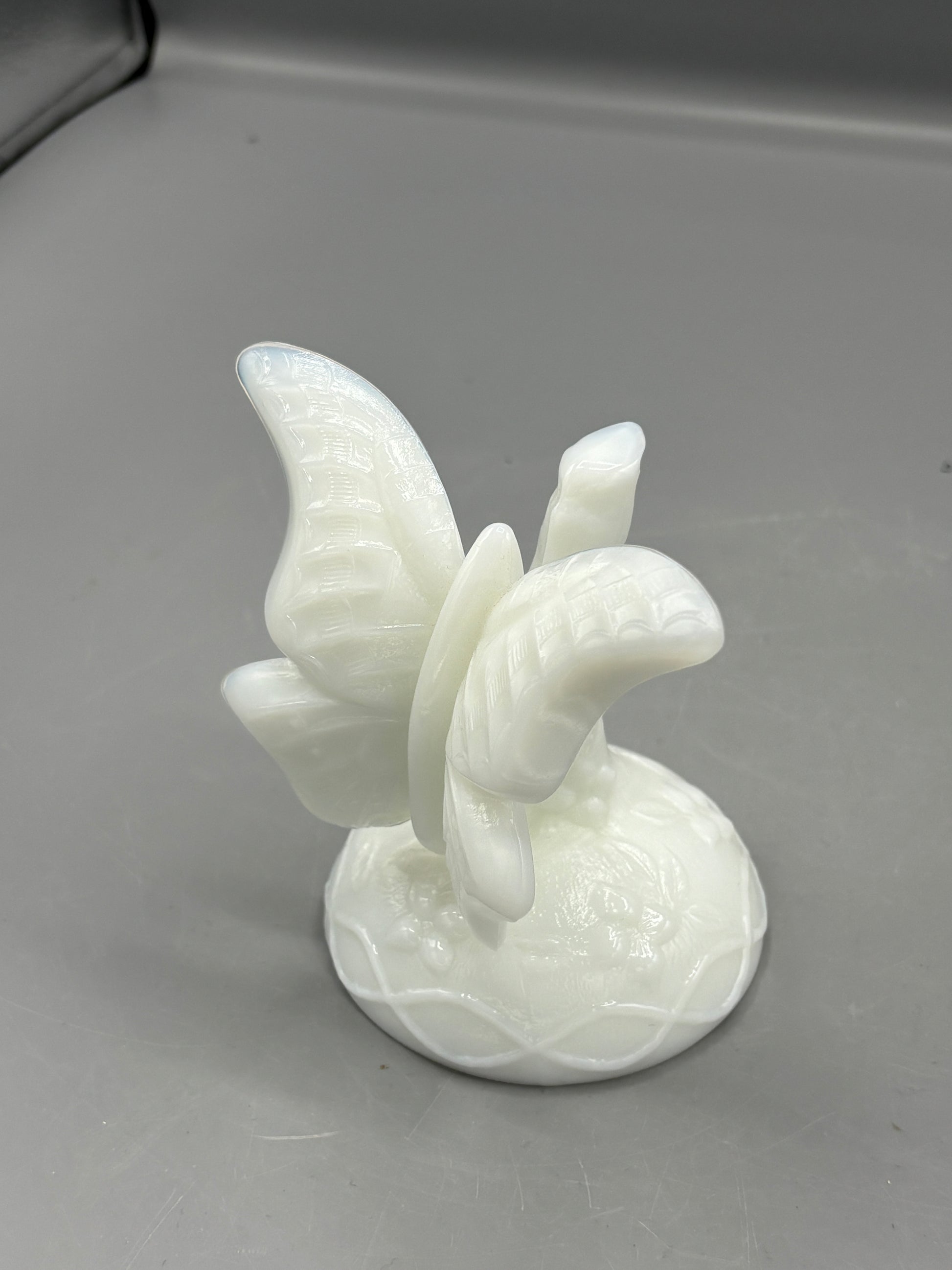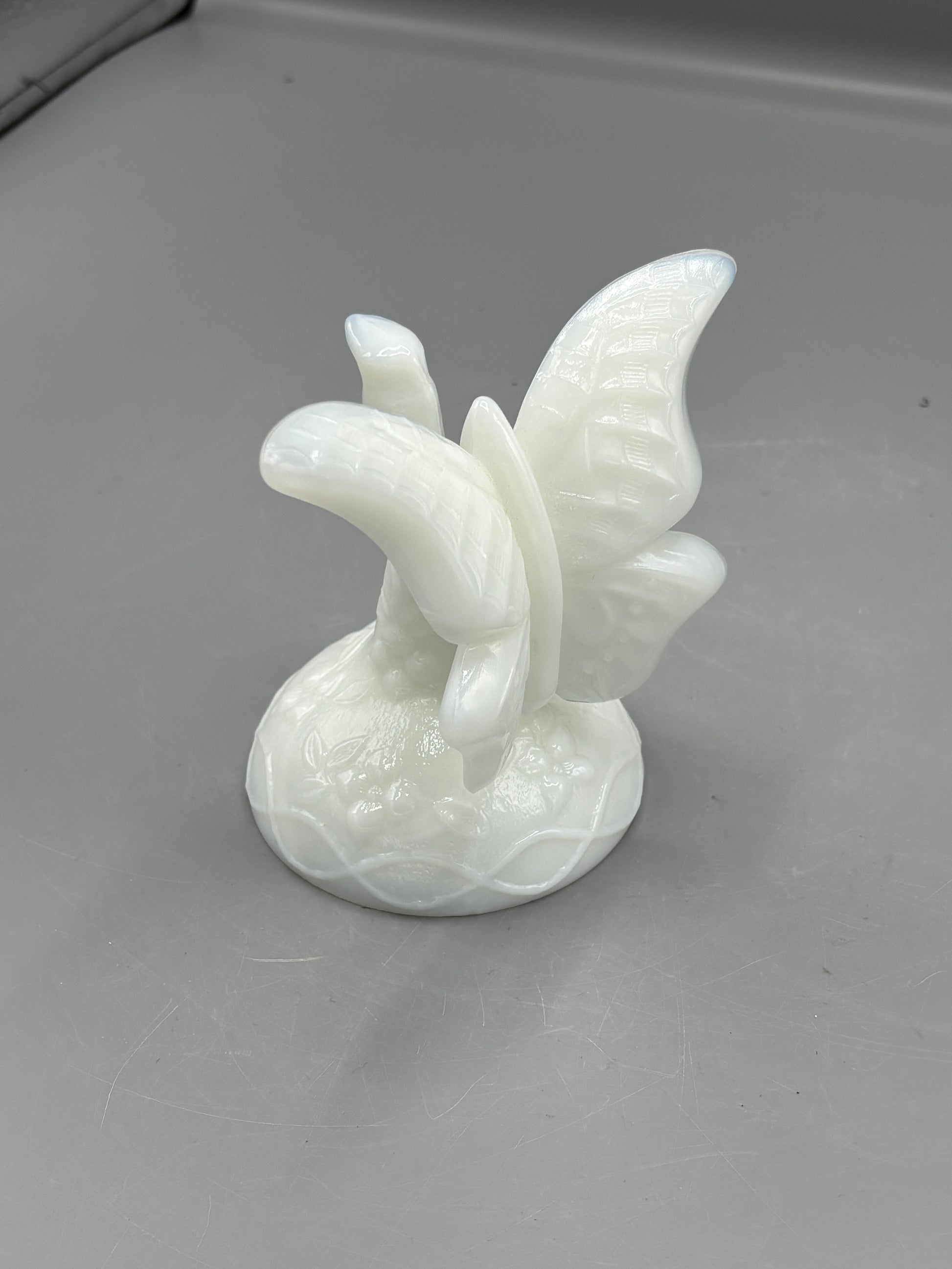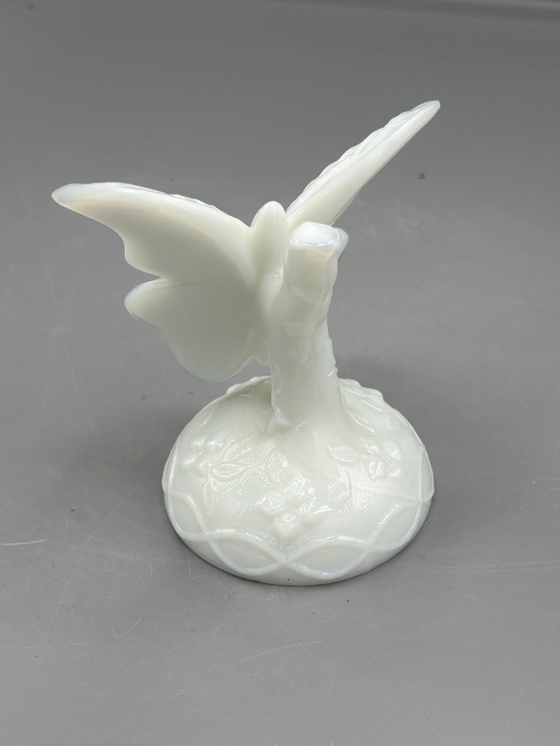 Vintage Fenton white butterfly in a branch ring holder