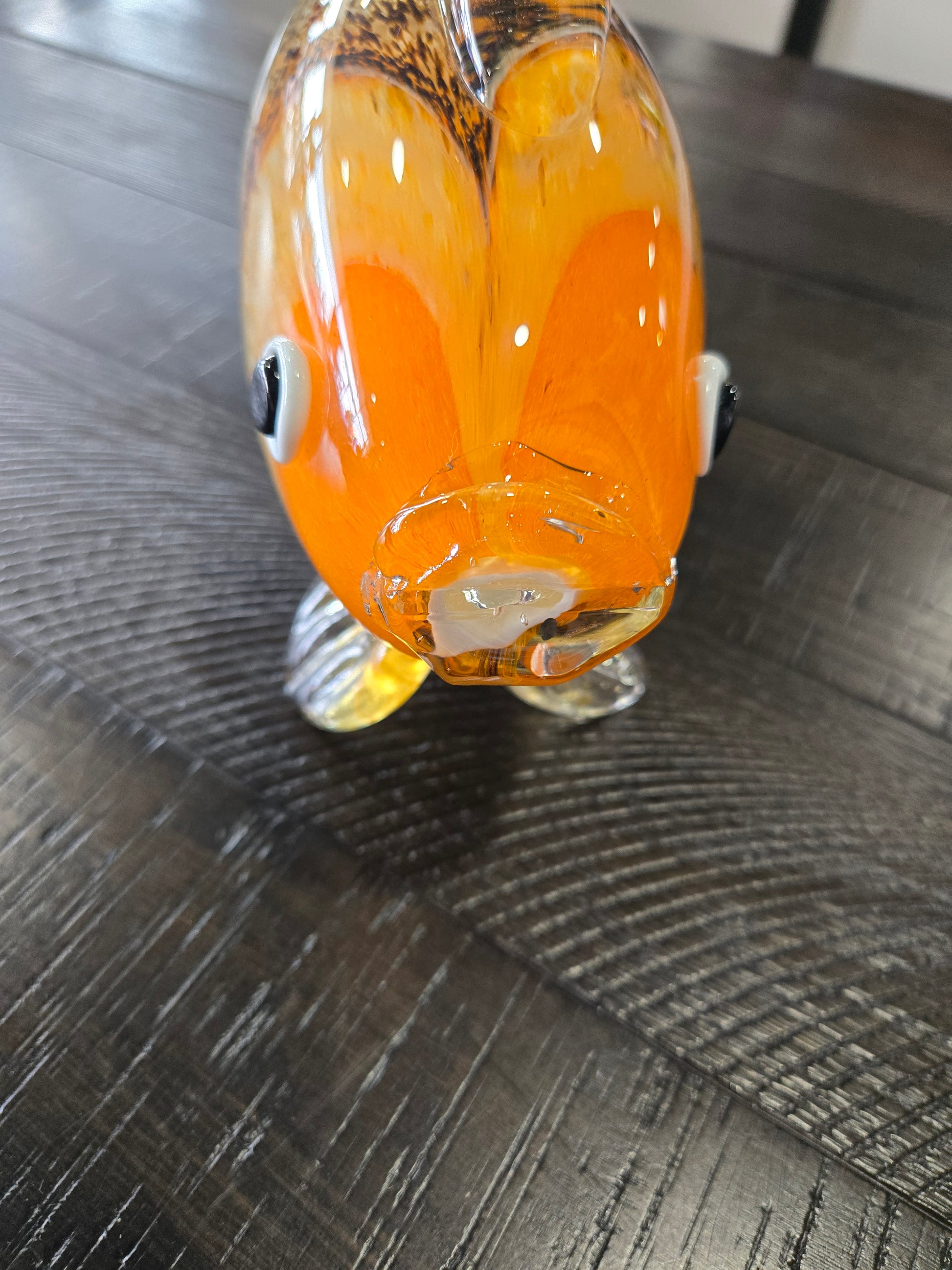 Vintage Hand Blown Murano Glass Fish w/ Orange Head and Speckled Body