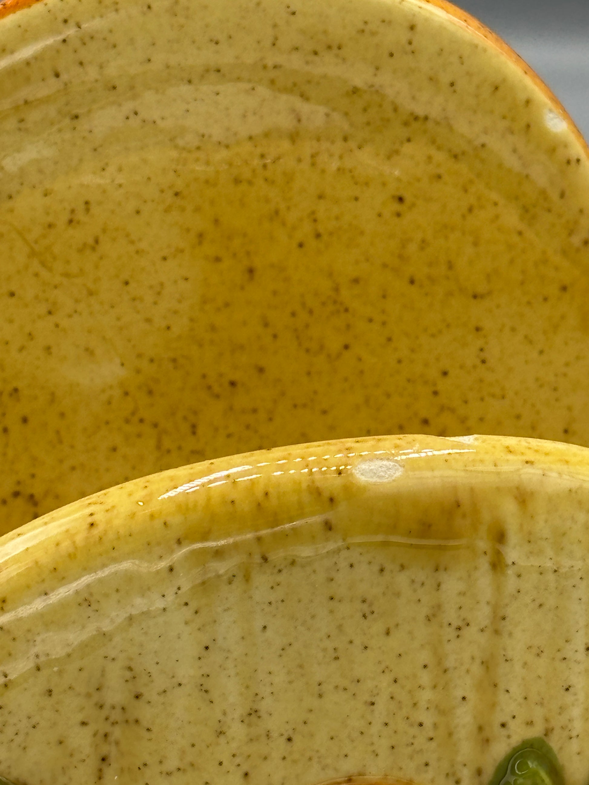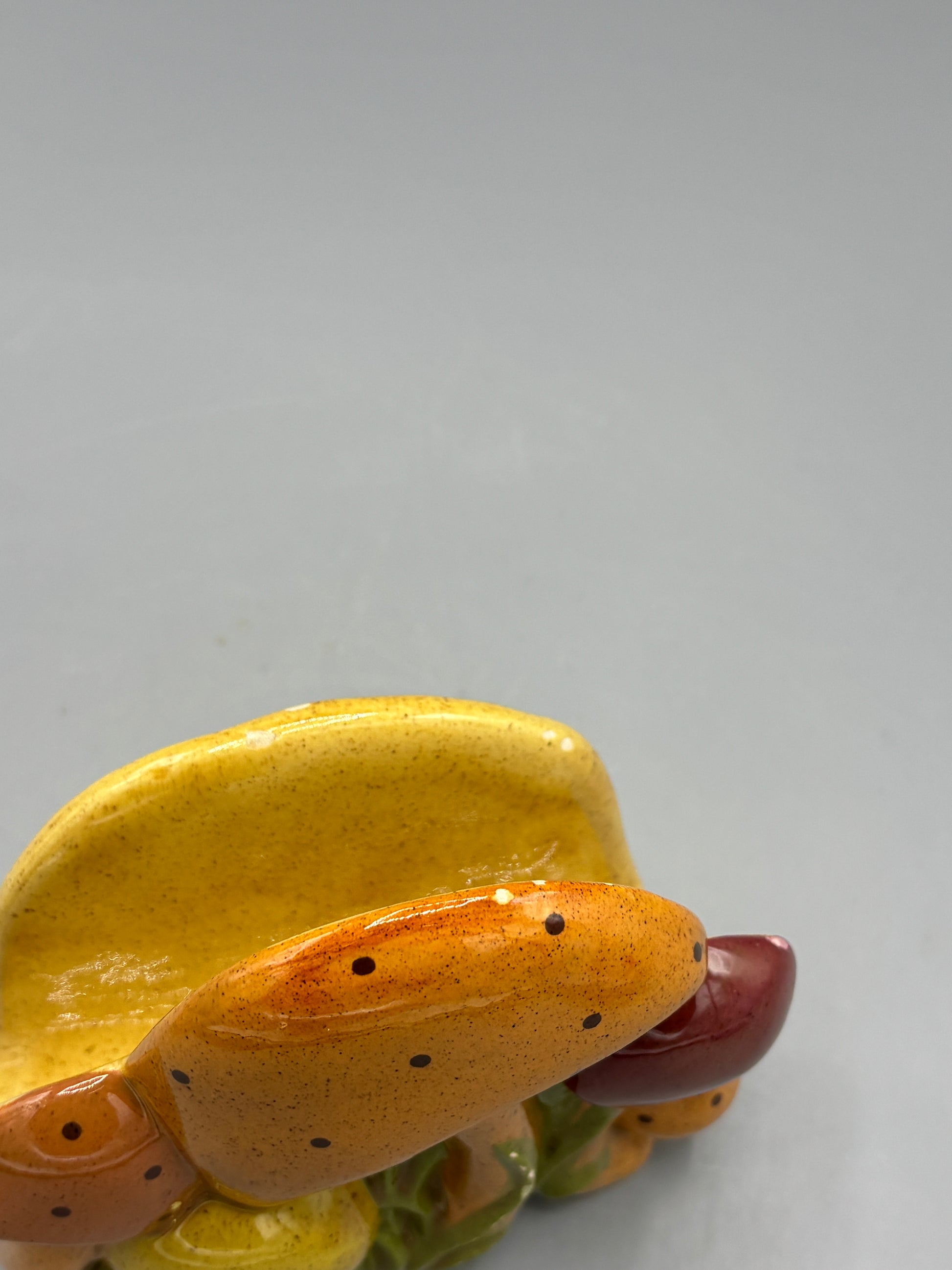 This charming ceramic napkin holder showcases hand-painted artistry in a whimsical mushroom design. Standing at 4½ inches tall with a 5-inch width, it combines functional tableware with vintage aesthetic appeal. The meticulous hand-painting technique adds character and authenticity to each piece, making it an ideal accent for collectors or those seeking distinctive dining décor with nostalgic charm.