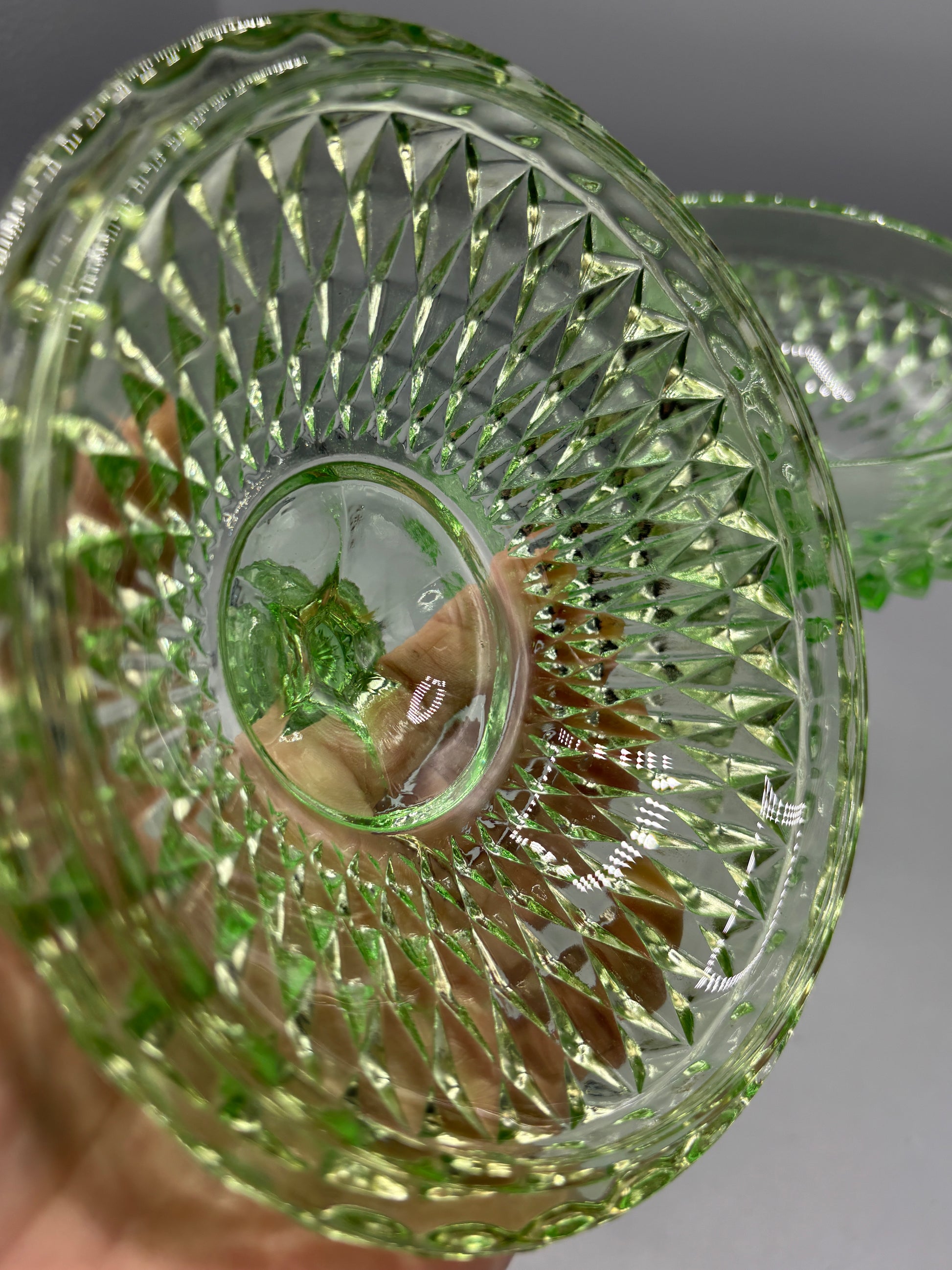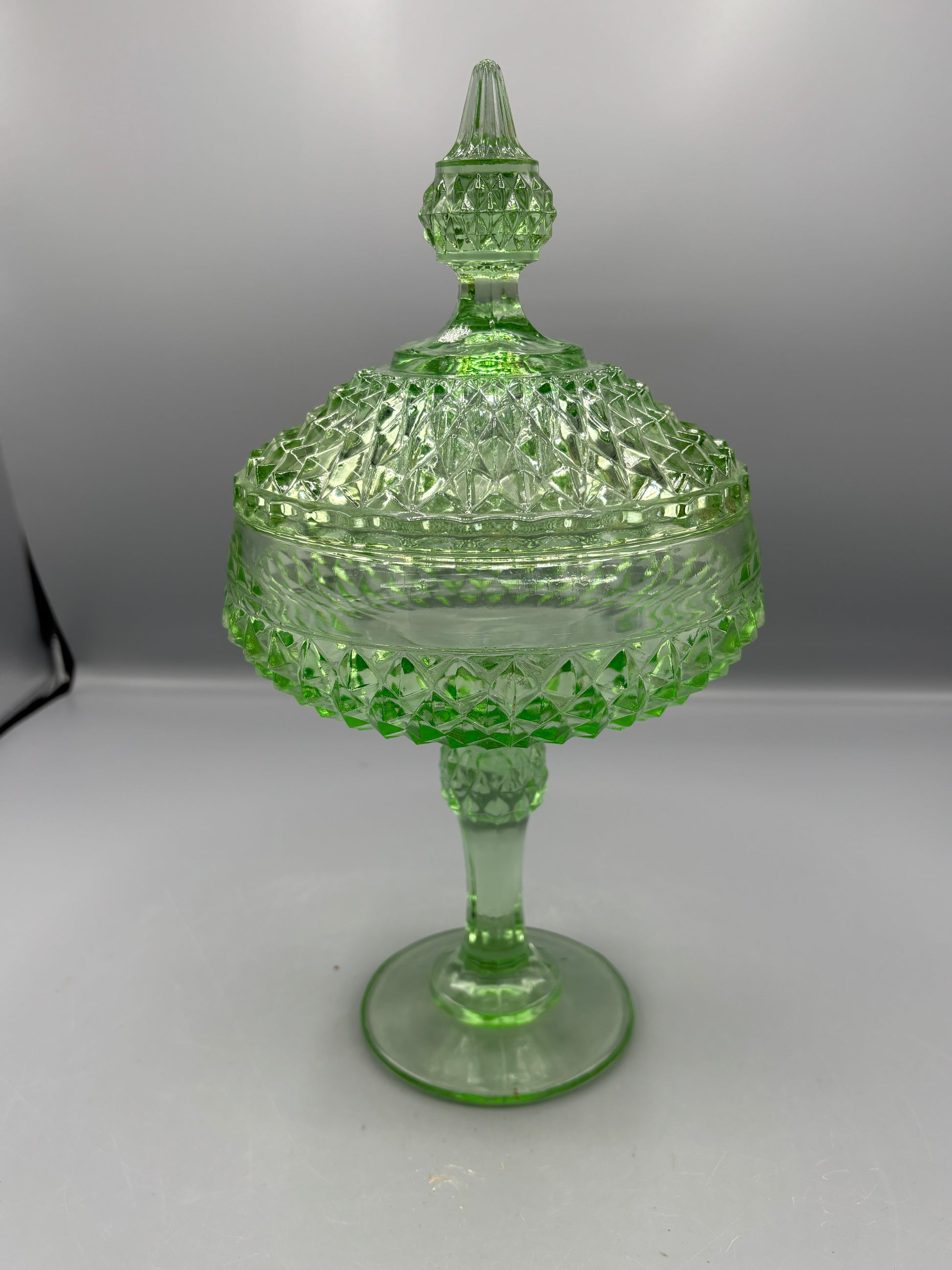 Vintage Indiana glass diamond point green pedestal dish