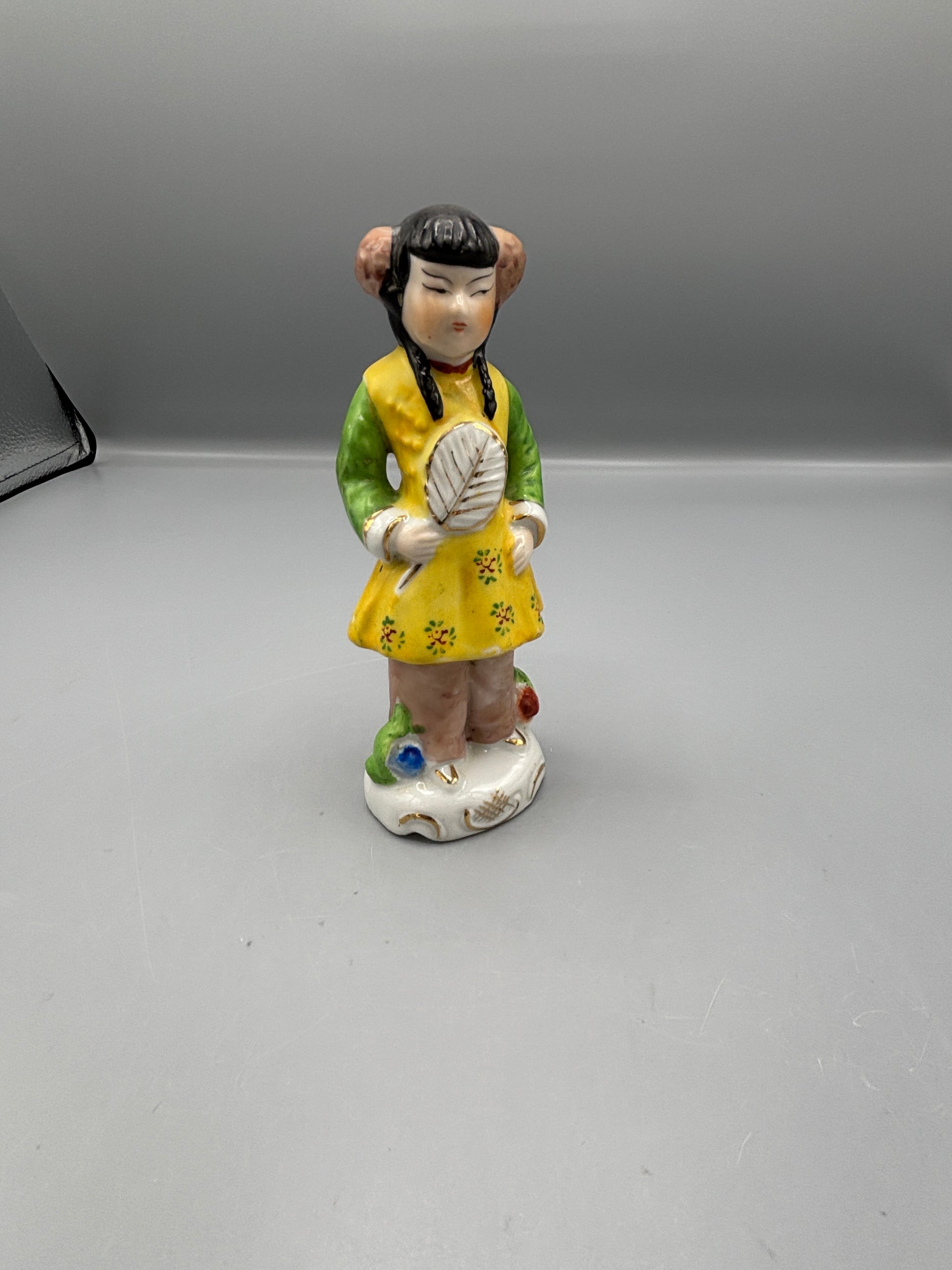Vintage Japanese girl figure with braids that has so many small details. This is a great figurine to add to any Asian home decor. The colors on the girl are vibrant. This shows amazing details by the artist.