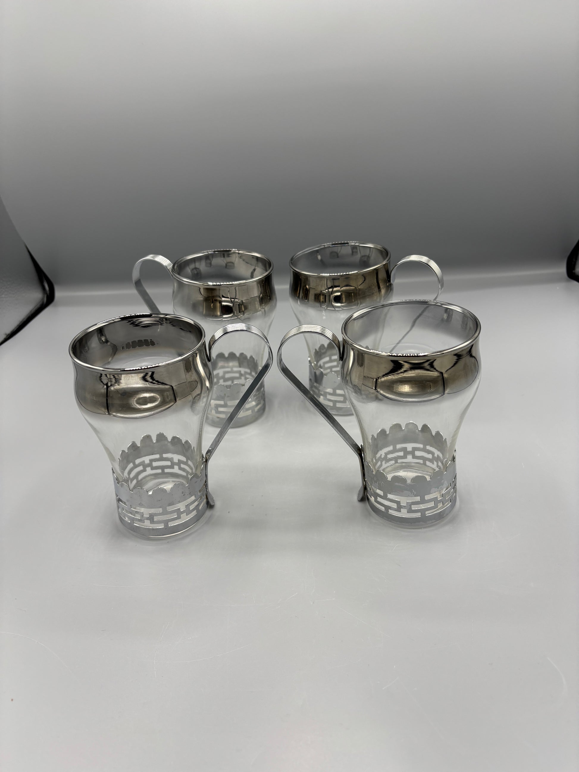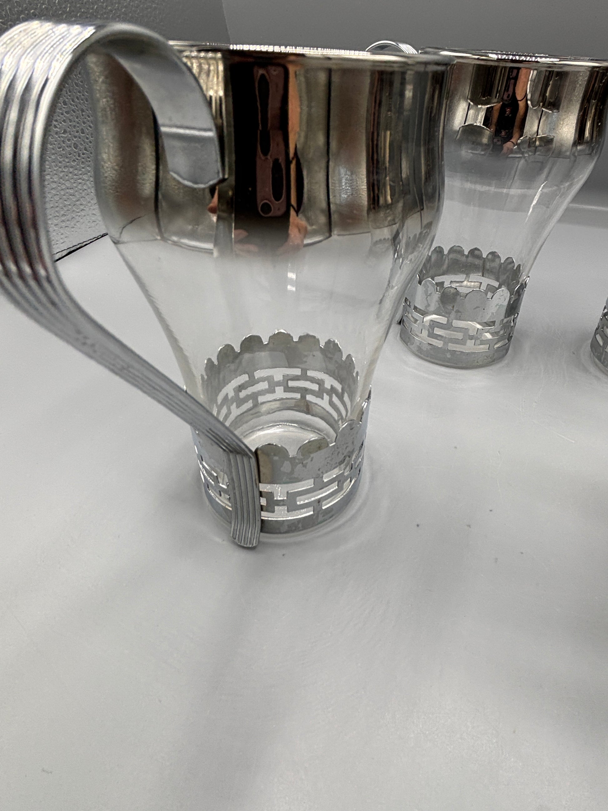 Vintage Libbey glass mug with removable silver metal handle. This is a great conversation starter for any table. They have no cracks or chips.