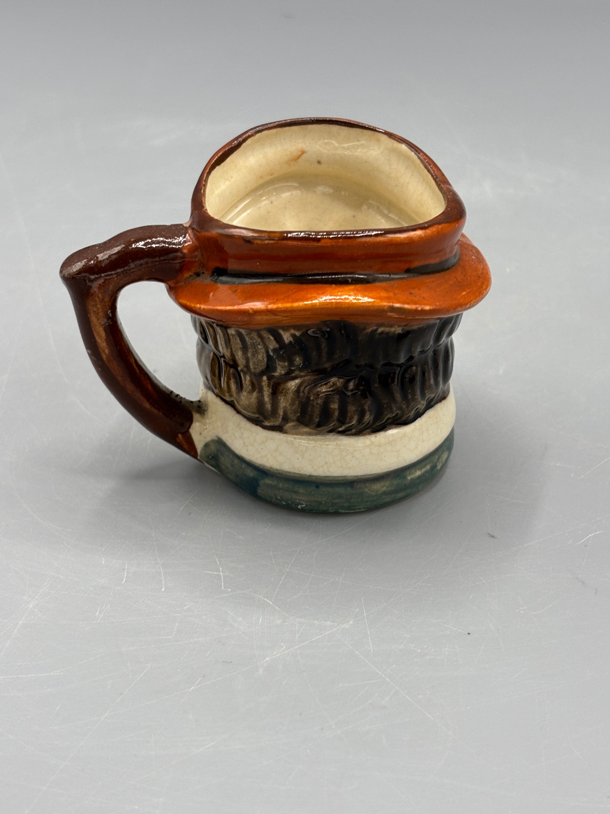 This charming miniature Lady Toby jug hails from the Occupied Japan era, a prized period for collectors of vintage ceramics. Standing at 2½ inches tall with a 3-inch width, this petite piece exemplifies the craftsmanship characteristic of post-war Japanese porcelain production. The delicate proportions and detailed figural design make it an excellent addition to any curated collection of historical tableware or decorative ceramics.