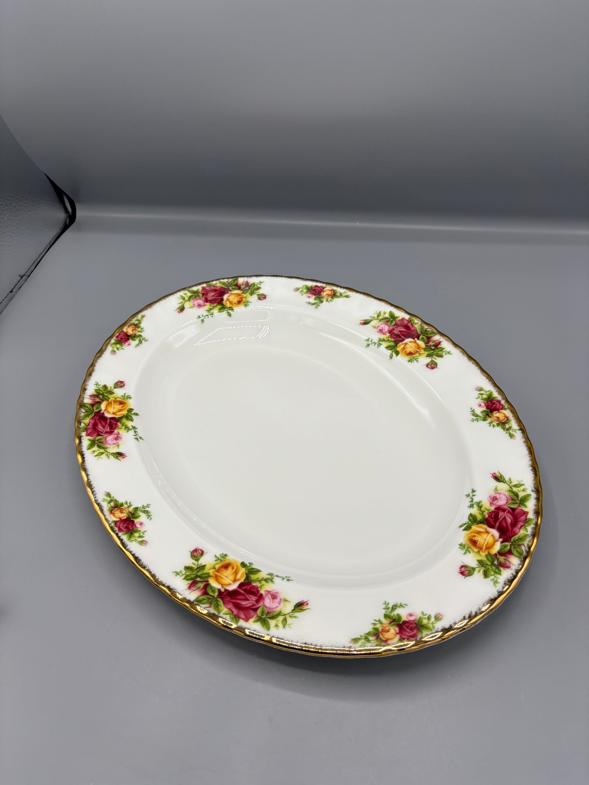 This highly collectible pattern from Royal Albert is called Old Country Roses. The flowers are absolutely gorgeous and the gold around the rim adds an elegant touch.