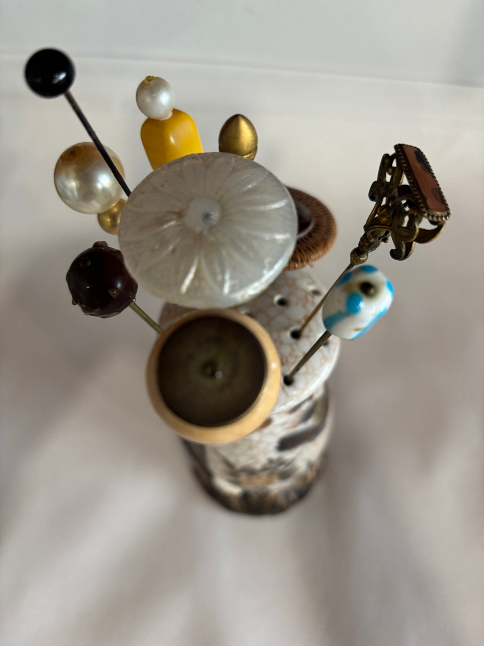 Vintage Satsuma Hat Pin Holder with 10 hat pins