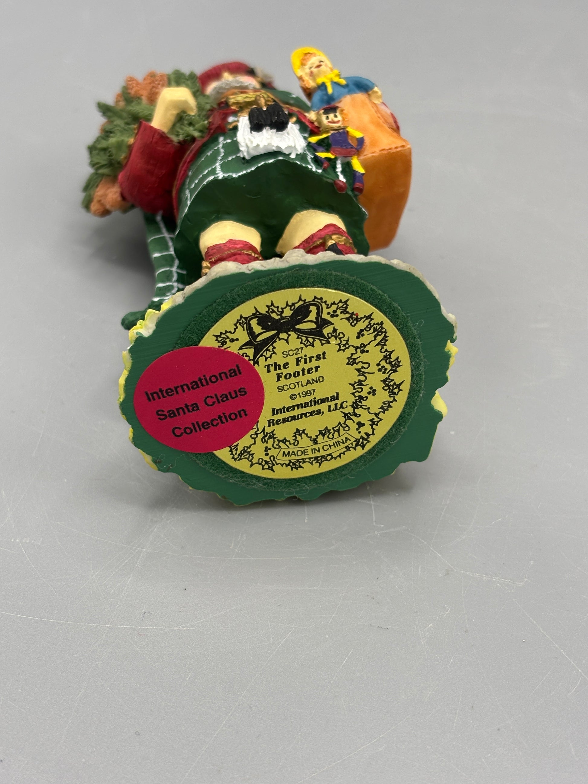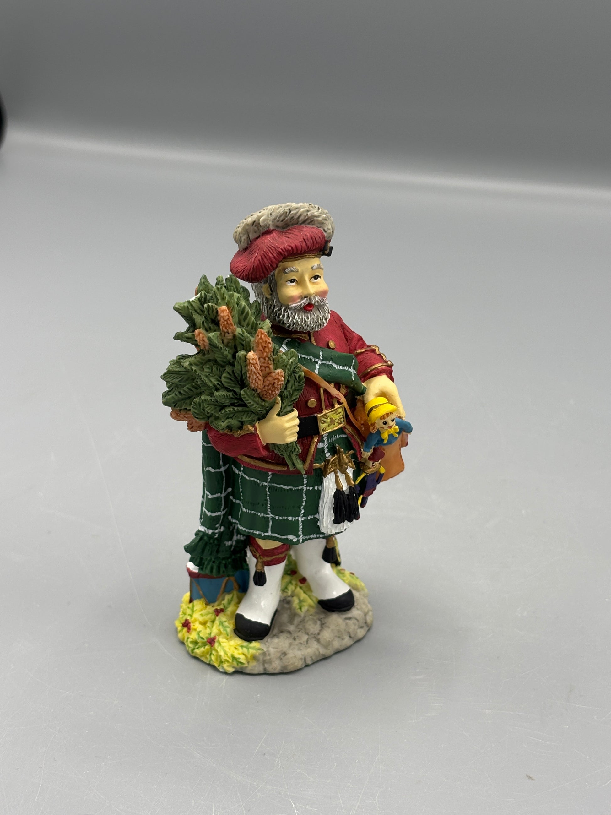 Vintage Scottish Santa that has so many wonderful details. The colors on this piece is vibrant. The figurine still has its original sticker on the bottom.