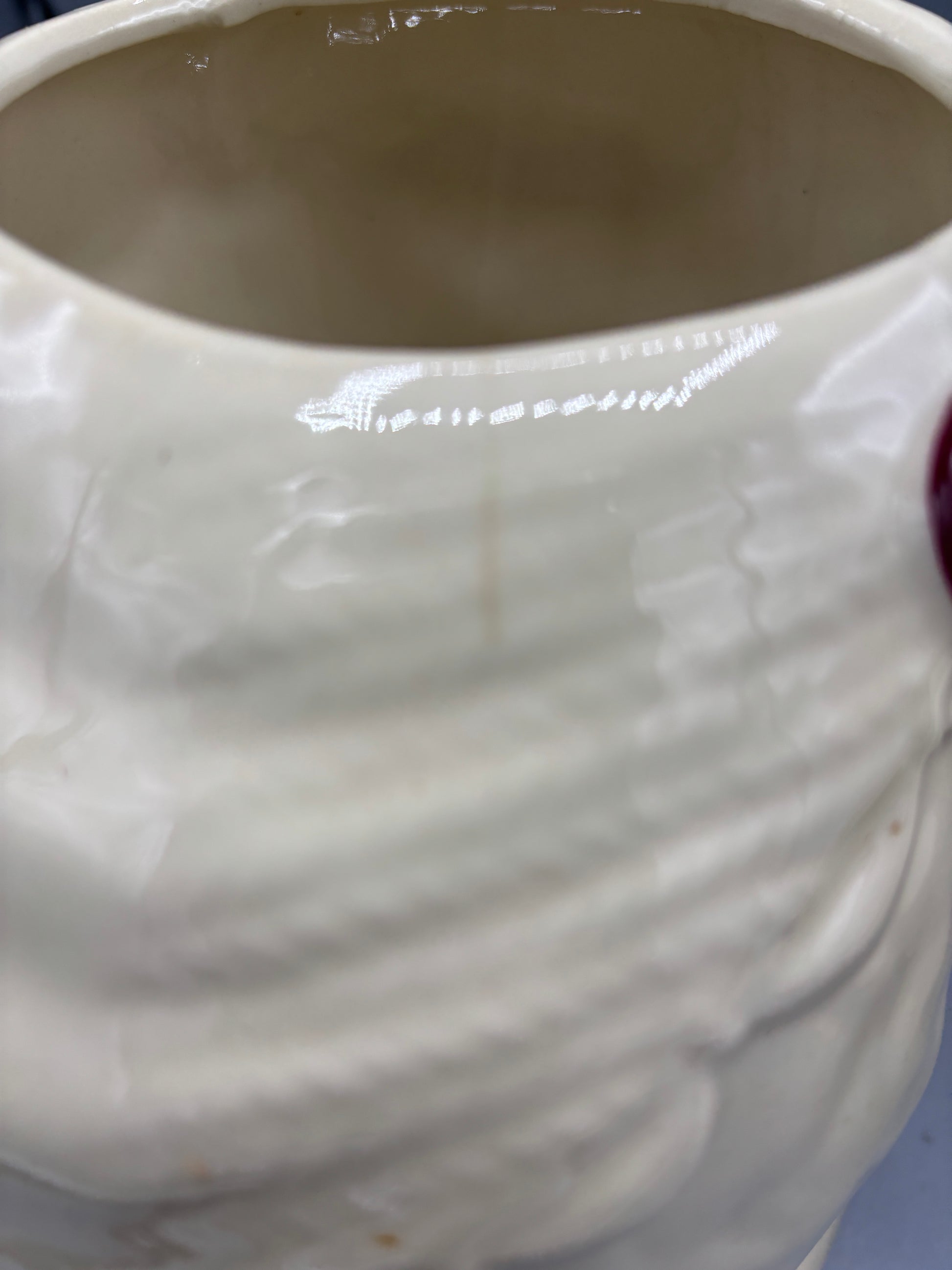 A charming Shawnee ceramic creation featuring the beloved Puss N Boots character, this vintage cookie jar captures feline personality with its playful demeanor. Standing 10.5" tall and 7.5" wide, it serves as both functional storage and decorative accent for collectors of mid-century pottery. The piece displays authentic vintage character, including a minor surface variation visible in detailed photography—a testament to its genuine age and handcrafted origins. Perfect for those seeking distinctive, conversation-starting décor that celebrates classic American ceramics and nostalgic charm.