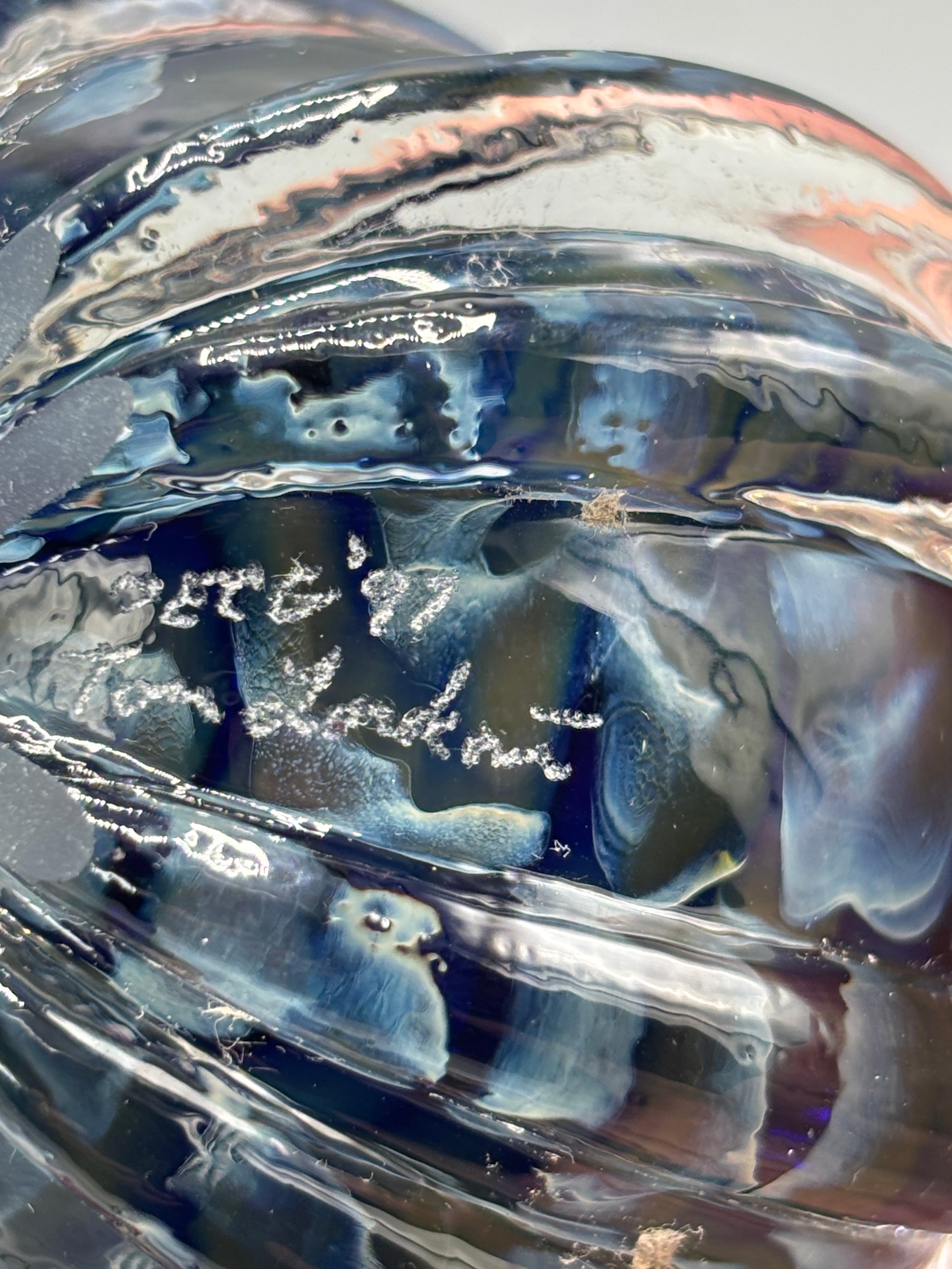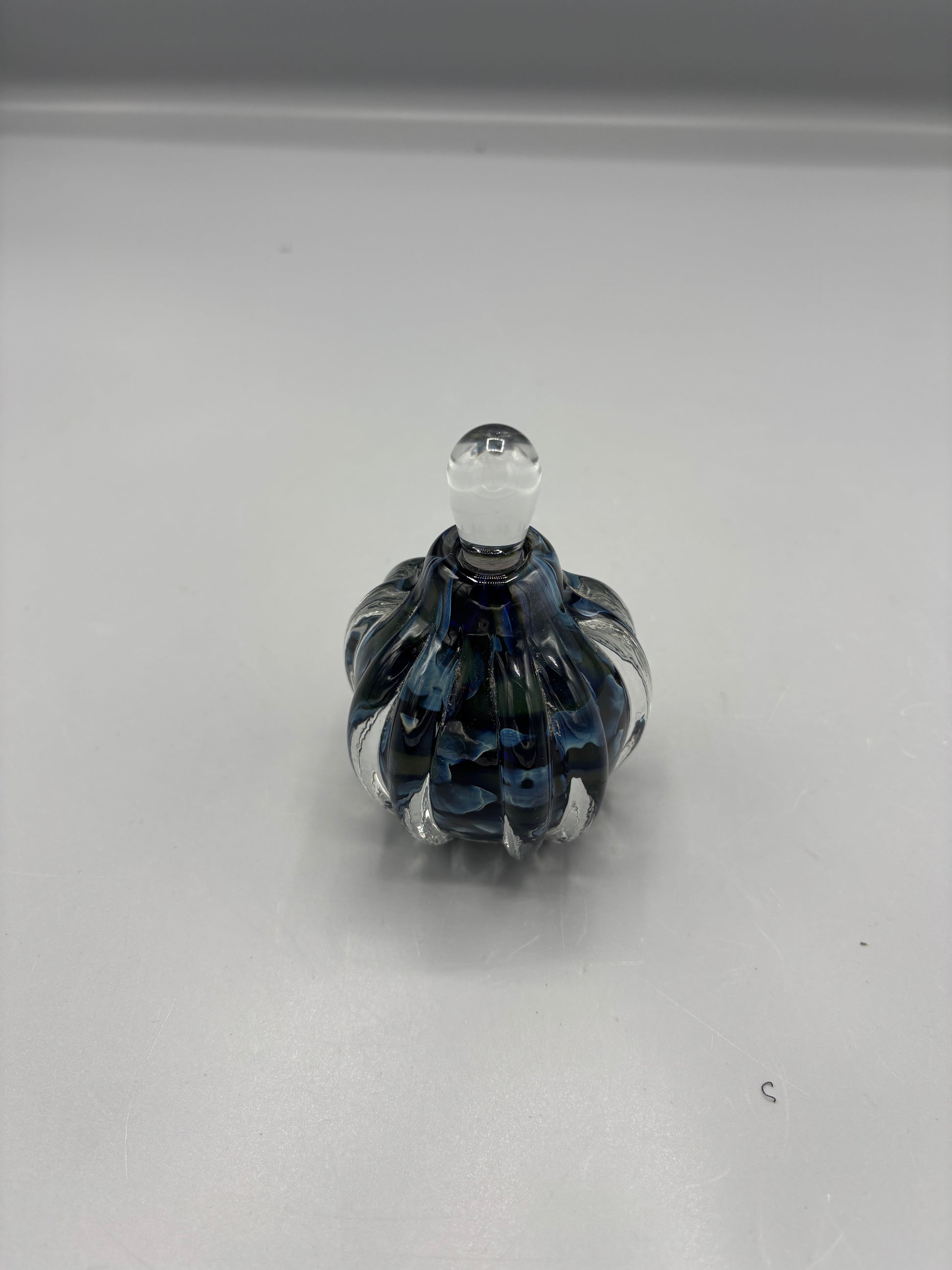 Vintage signed Murano blue & green glass perfume bottle that would look stunning on any vanity. This is a signed piece, refer to pictures for details.