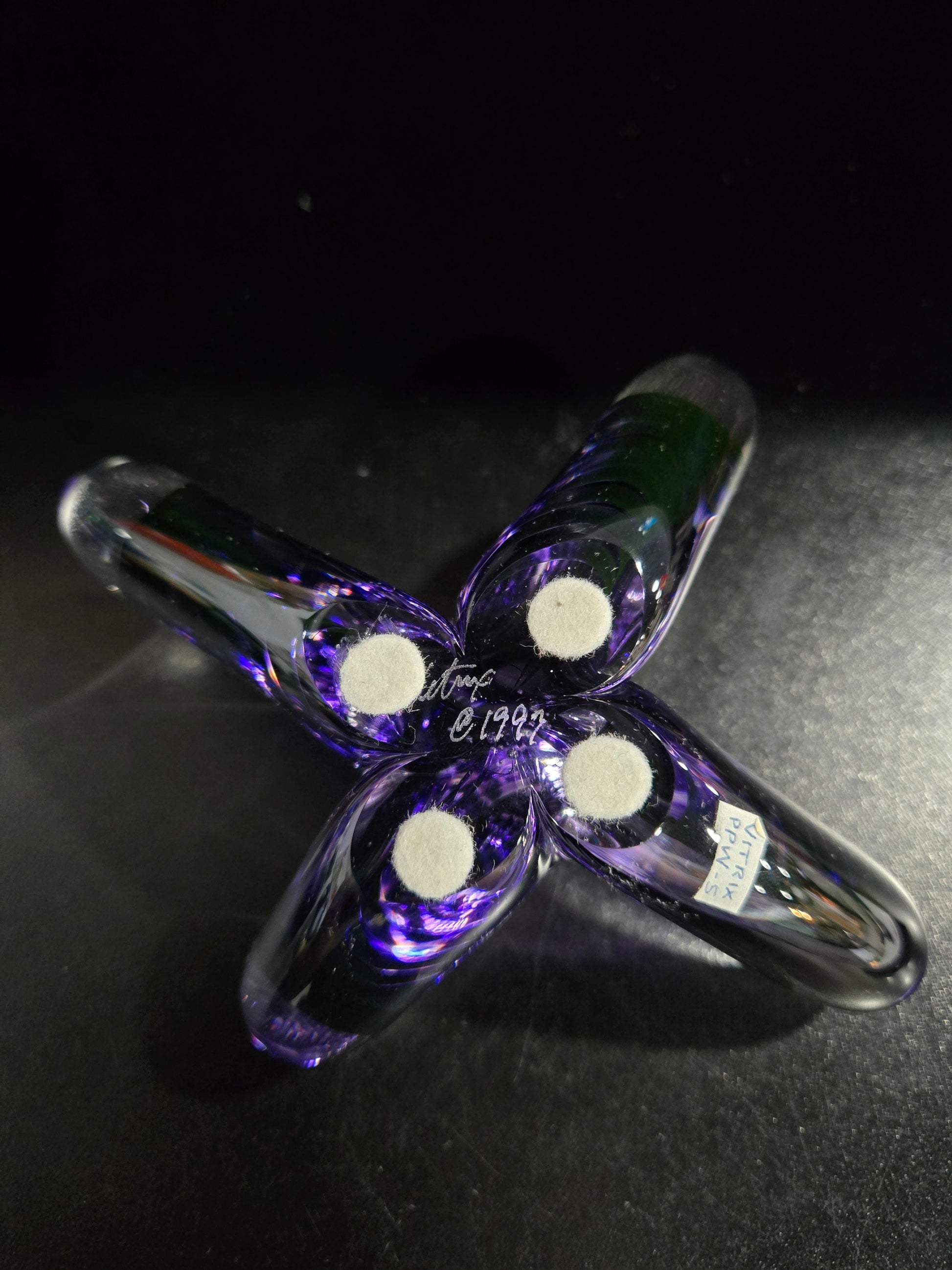 Vintage Vitrix purple butterfly paperweight that is signed. This is a lovely shade of purple with a clear hue depending on how the light hits the butterfly. This shows no damages please refer to the pictures for details.