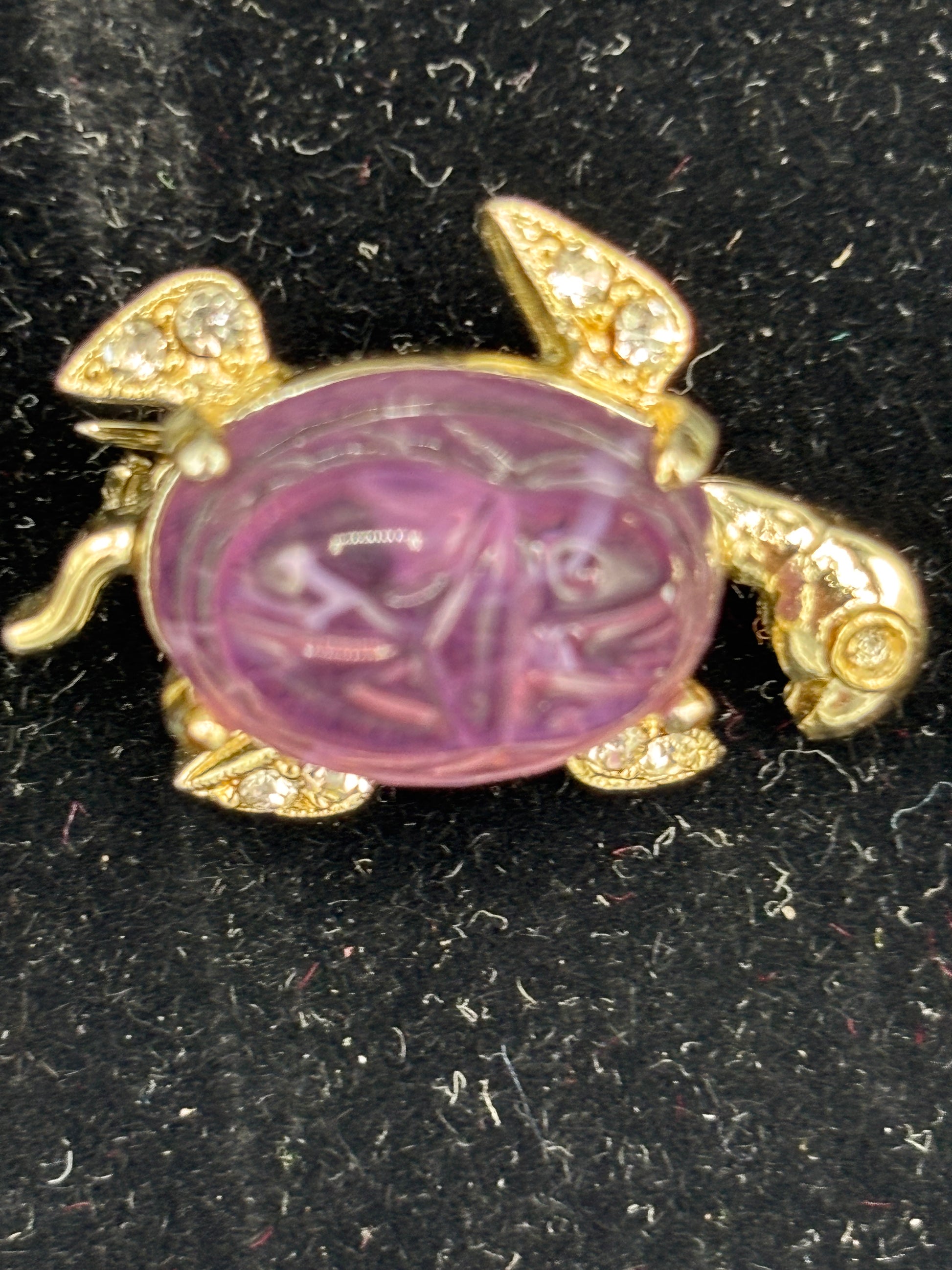 Vintage Weiss purple brooch that has a carved shell, refer to pictures for details. This is a cute small turtle that is stamped Weiss. Imagine adding this to your collection.